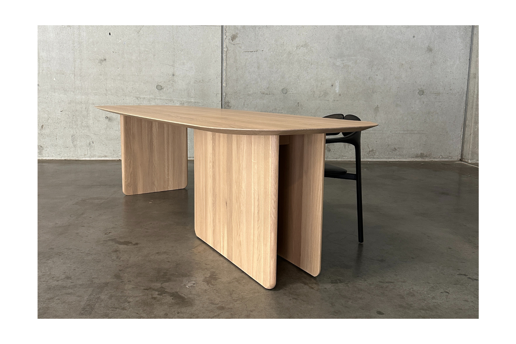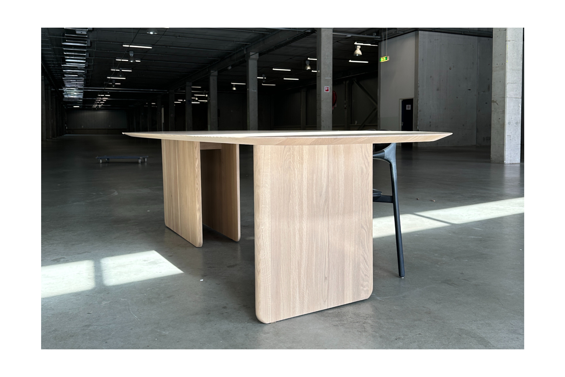 Maatwerk tot in detailDe Amsterdam tafel wordt volledig op maat gemaakt. Kies uit diverse vormen voor het tafelblad: verjongd, recht, bol of spits. Ook de hoekafwerking is naar wens aan te passen – van strak tot organisch.