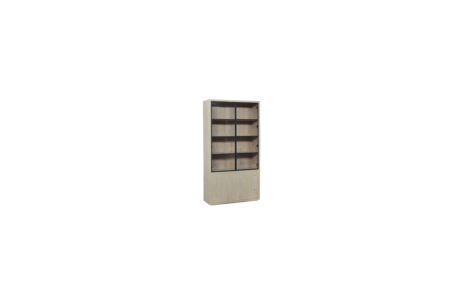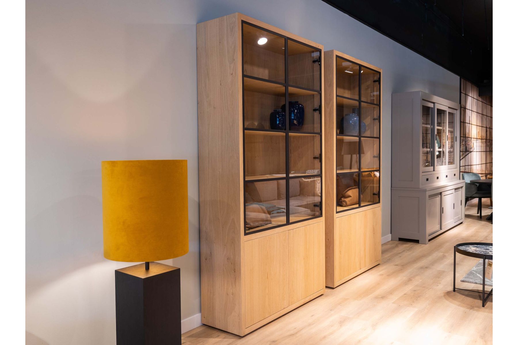- EGK091 Glaskast eiken rustiek PUUR/DUNE 2drs eiken/ 2drs metaal / kast 1deel 230x125x40