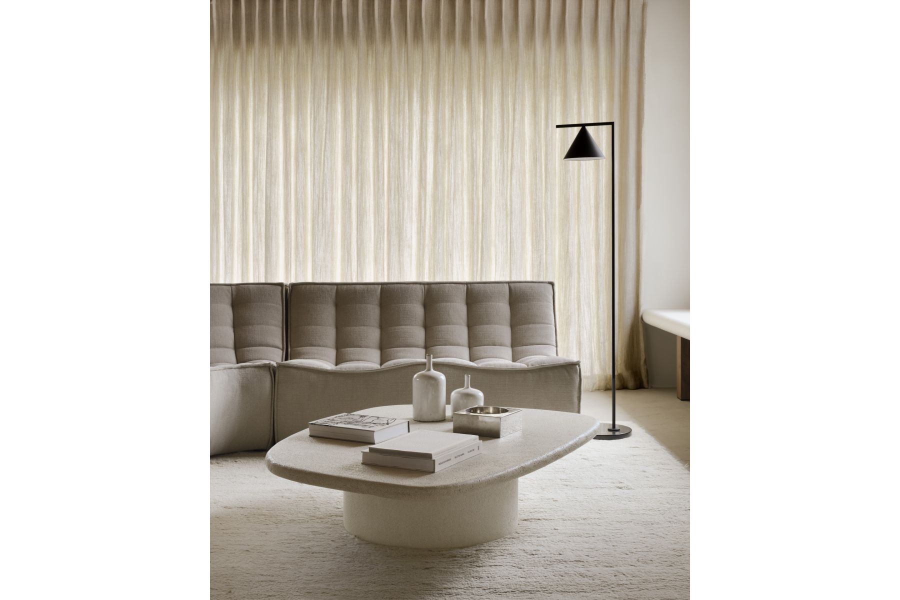 Elementen salontafelElegante eenvoud vormt de basis van de Elements-collectie. Naadloze en zachte vormen smelten perfect samen met een textuurrijk karakter, dankzij de vakkundige handen van ambachtslieden. Elk stuk heeft een unieke identiteit met een hoog