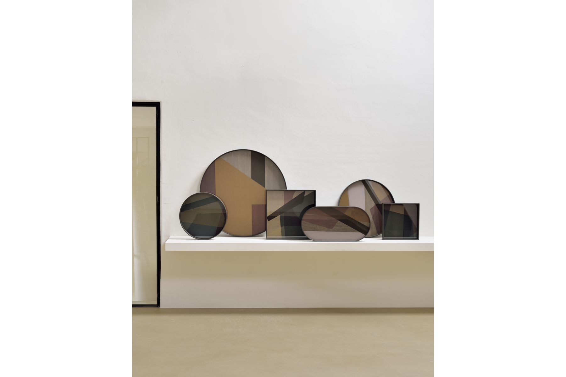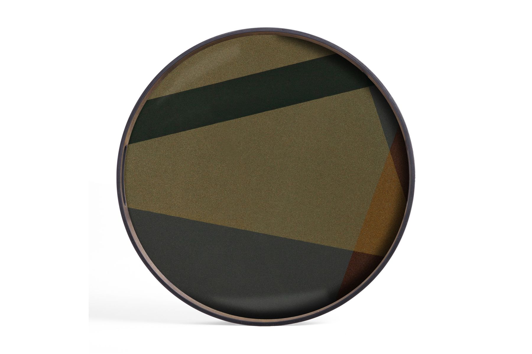 Overlappende vormen en kleuren zorgen voor een rustig ritme in de Composed Angles collectie. Het gezeefdrukte glasontwerp bestaat uit een gelaagde compositie van doorschijnende en ondoorzichtige lagen, wat een onverwachte harmonie creëert. Elk dienblad past perfect bij een dienbladtafel, maar rust even mooi op een tafelblad of een schap. Ontworpen door Dawn Sweitzer.