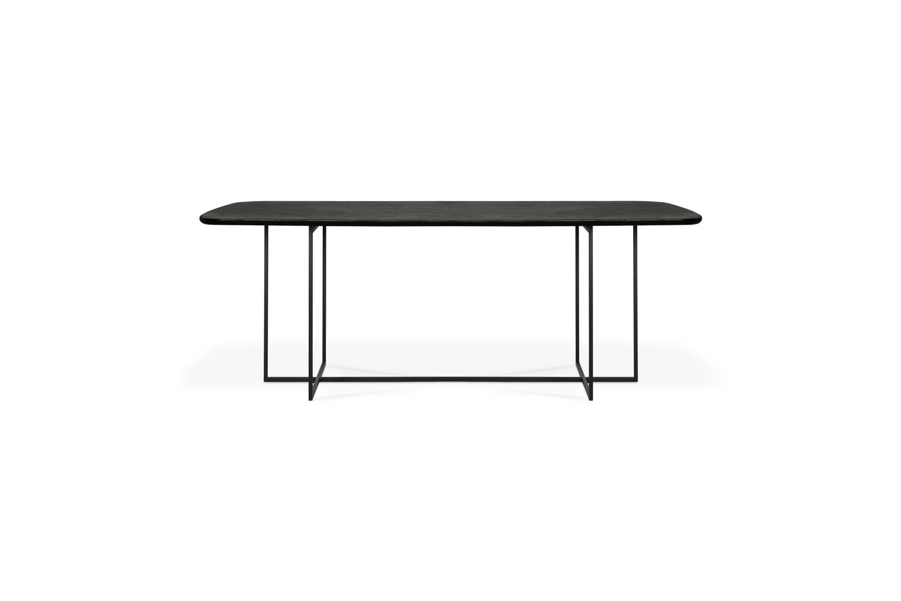 Kom samen aan de Arc eettafel, zij het voor werk of plezier. De Arc combineert een taps toelopend zwart metalen onderstel met een een licht afgerond tafelblad uit zwart eikenhout, afgewerkt met een geborstelde vernislaag. Dit ontwerp heeft een verfijnde v