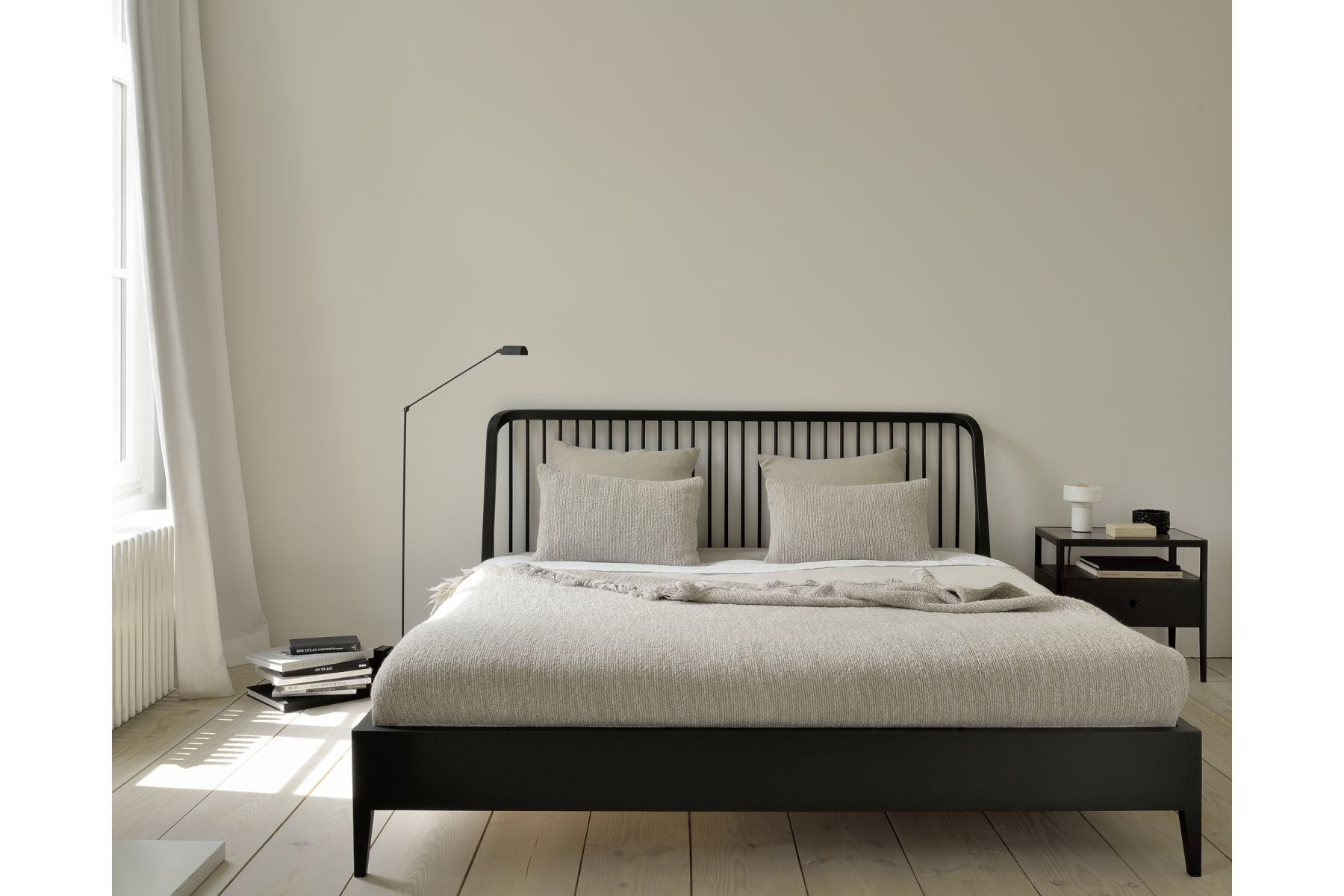 De Spindle collectie vond zijn inspiratie in het traditionele spinnewiel en heeft perfect uitgelijnde spijlen in het hoofdeinde. De iets taps toelopende poten en afgeronde hoeken geven een zachte, sensuele uitstraling aan deze prachtige slaapkamercollecti
