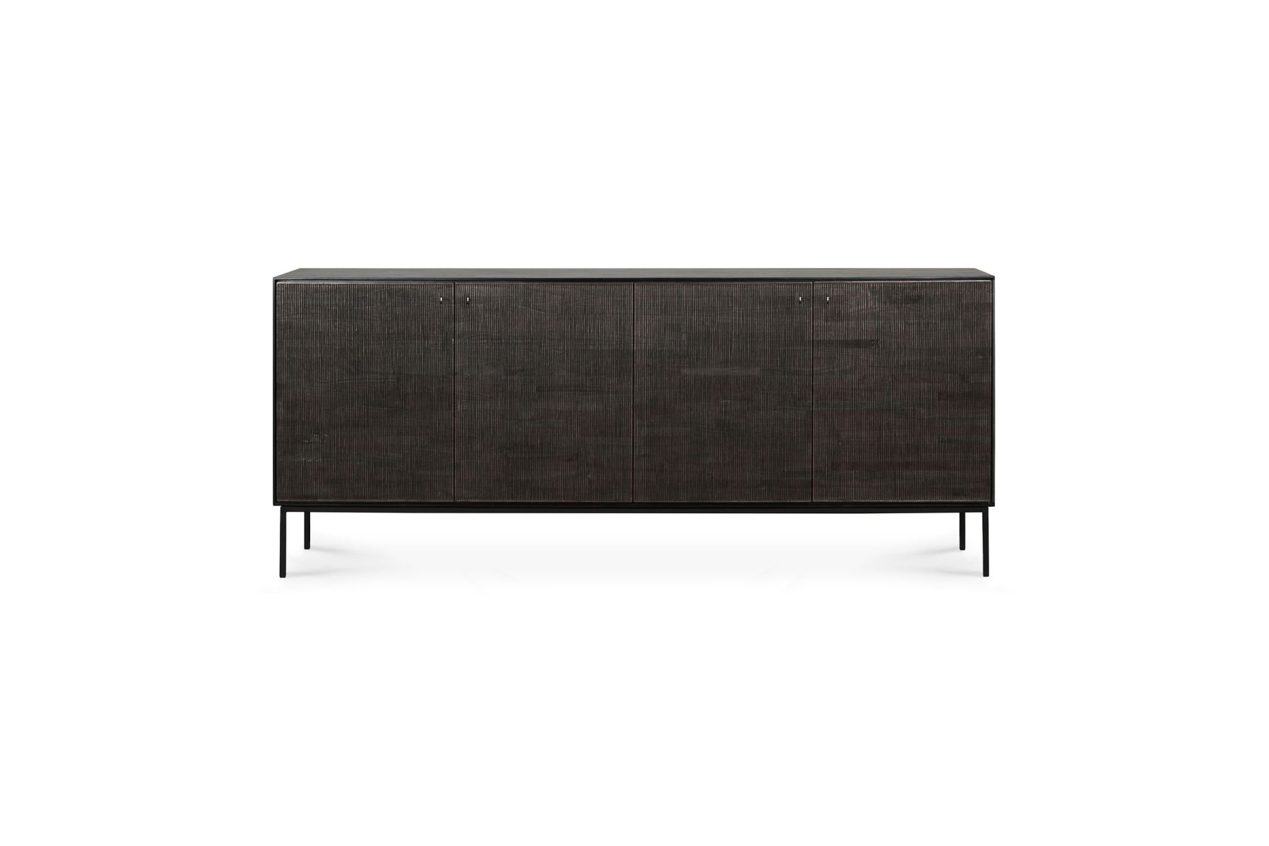 ETHNICRAFT DARK TEAK GROOVES SIDEBOARD-4 DOORS 202x45x87 WITH BLACK METAL LEGS 12253