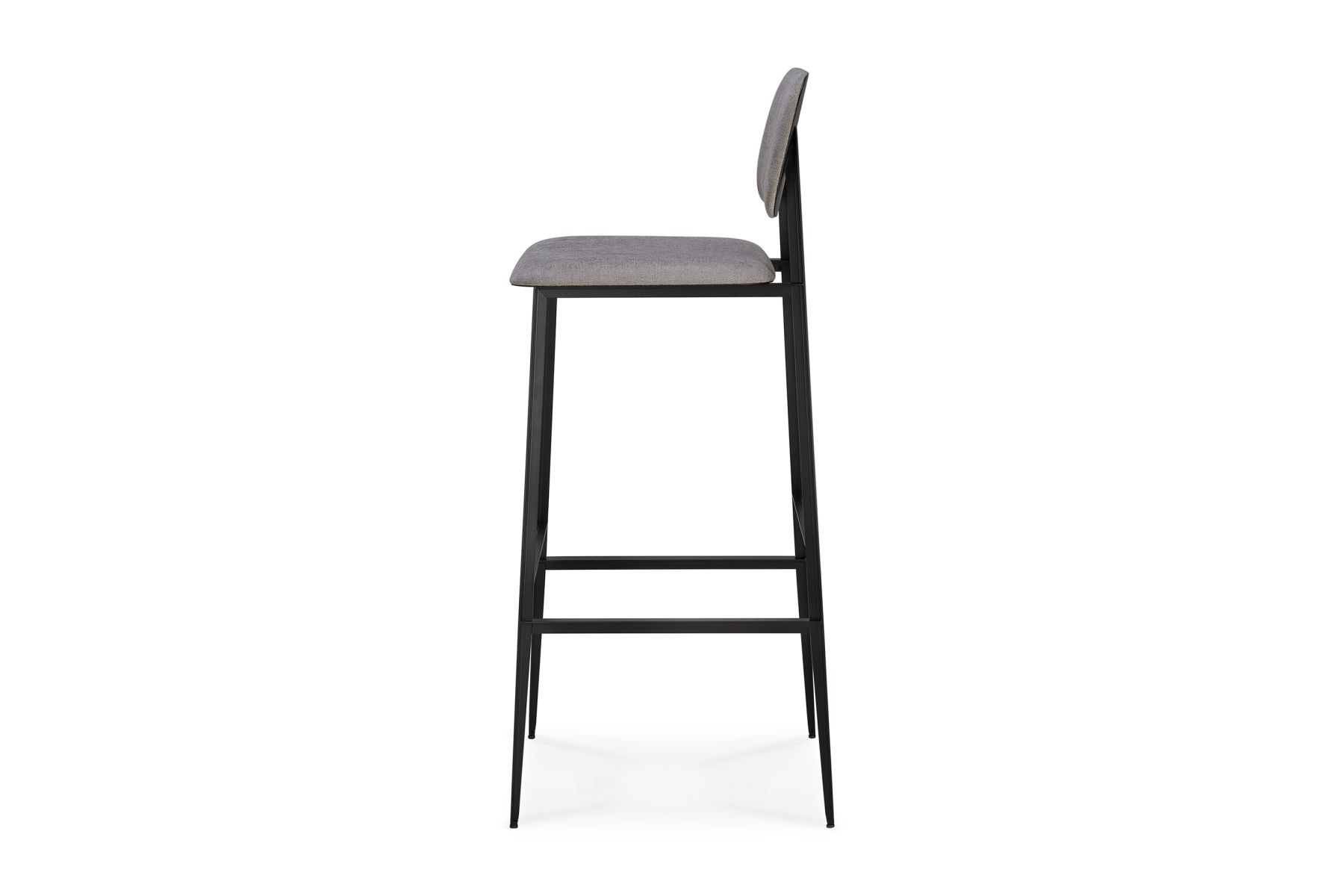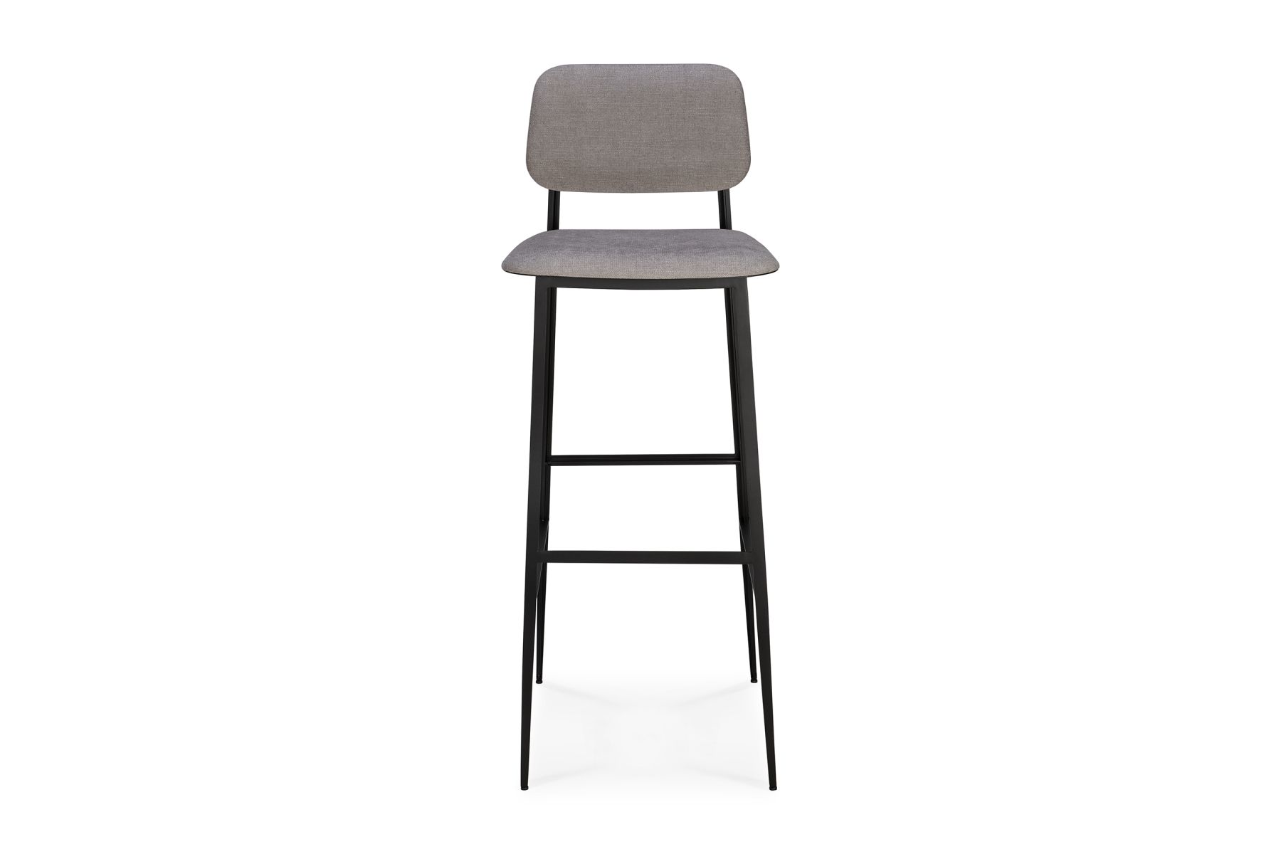 De DC hoge krukken, ontworpen door Djordje Cukanovic, zijn gebaseerd op de typische luchtige contouren van de DC eetkamerstoelen. Verkrijgbaar met of zonder rugleuning. Zwart metalen frame met een lichtgrijze bekleding. Zithoogte 83 cm