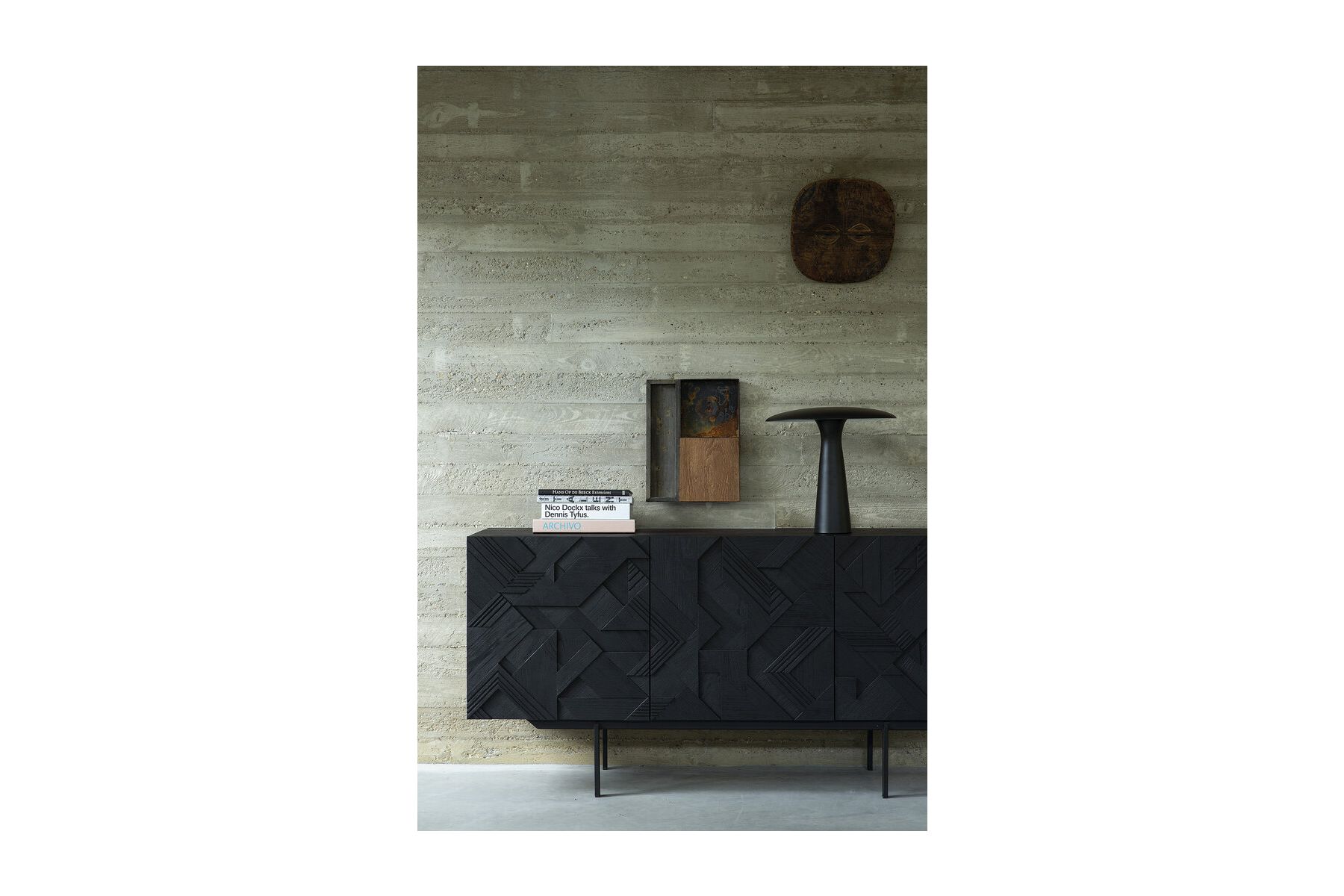 ETHNICRAFT GRAPHIC SIDEBOARD-3 DOORS 168x45x80 WITH VENEER FRONT PANEL AND BLACK METAL LEGS 10062 is beschikbaar om te kopen in verhogingen van 1