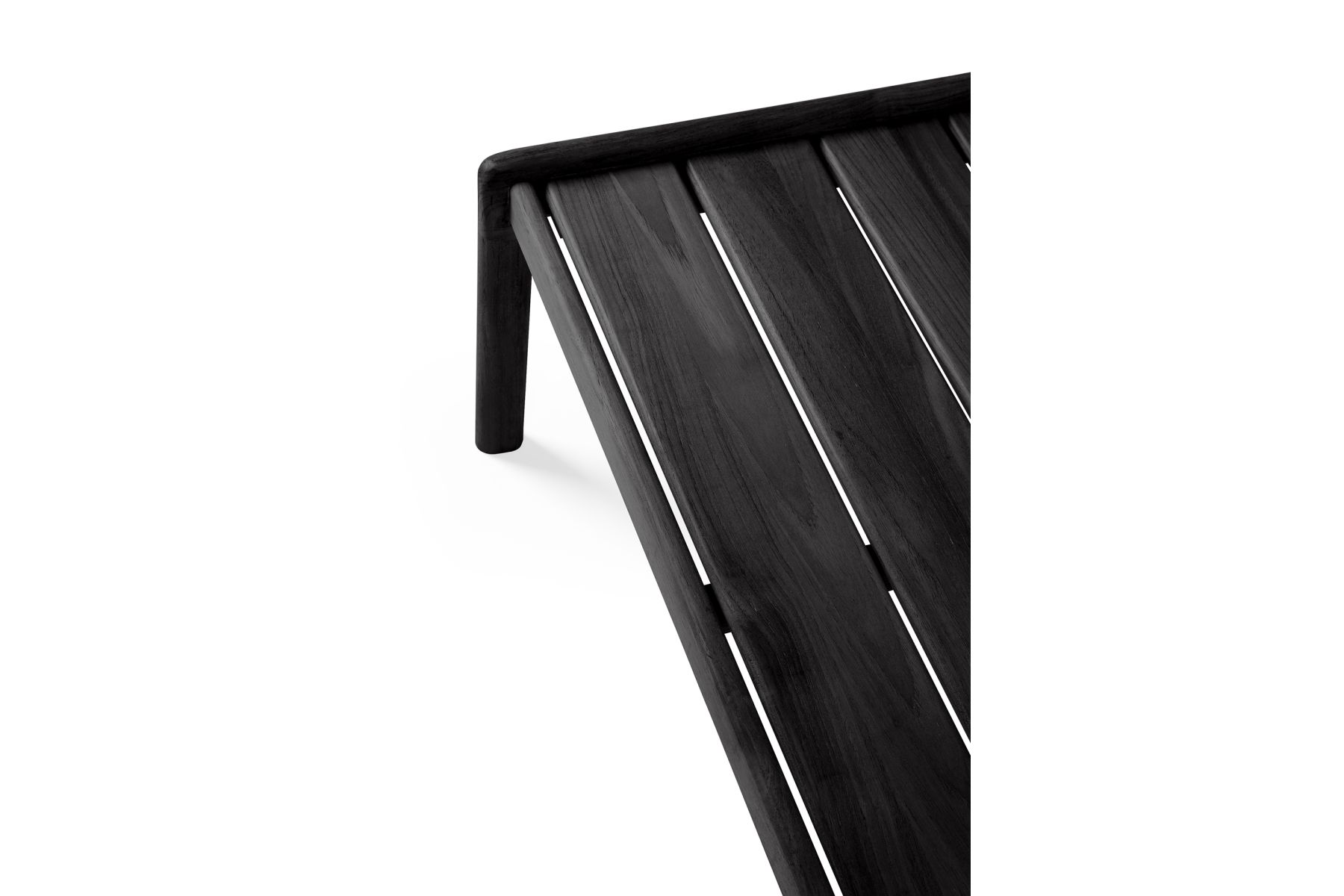 Gemaakt van 100% massief, zwart getint en geborsteld teakhout met een vernisafwerking.