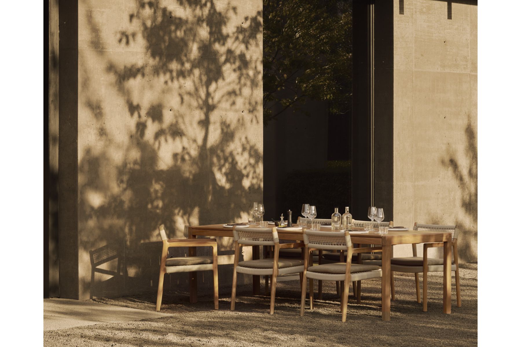 ETHNICRAFT JACK WOVEN OUTDOOR DINING CHAIR BEIGE CORD - SILK FABRIC WITH ARMS 56 x 60 x 81 10340