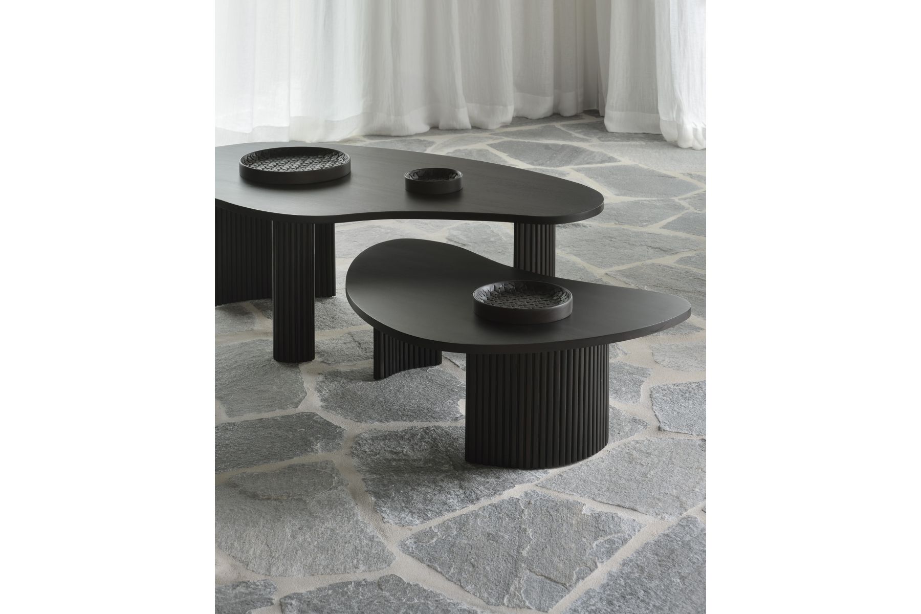 Speelse, kiezelachtige vormen op een mooi, geplooid onderstel. De Boomerang koffietafel is een fantastische en goed geproportioneerde toevoeging aan elke ruimte. Opgesteld in beide maten of net als vrijstaand model: dit ontwerp zal zeker en vast de aandac