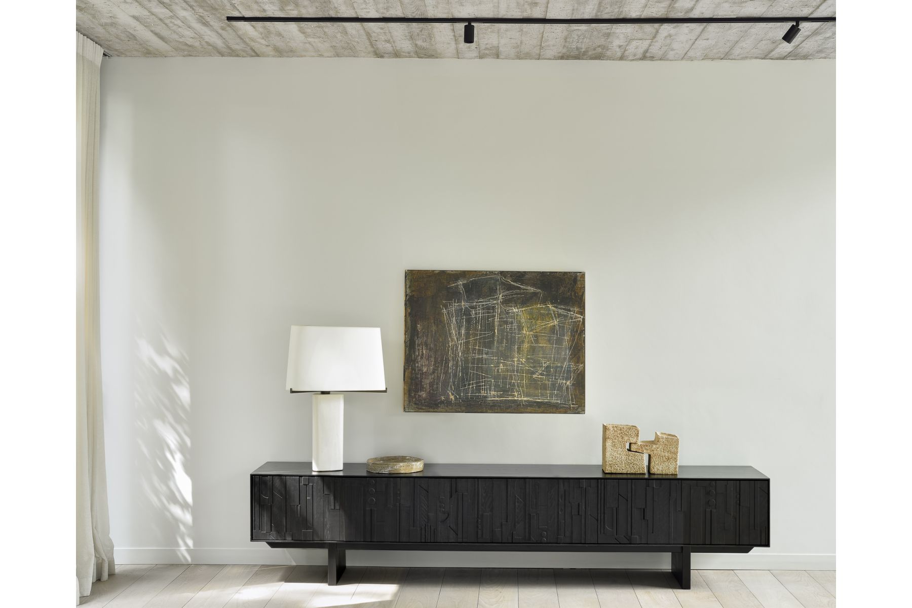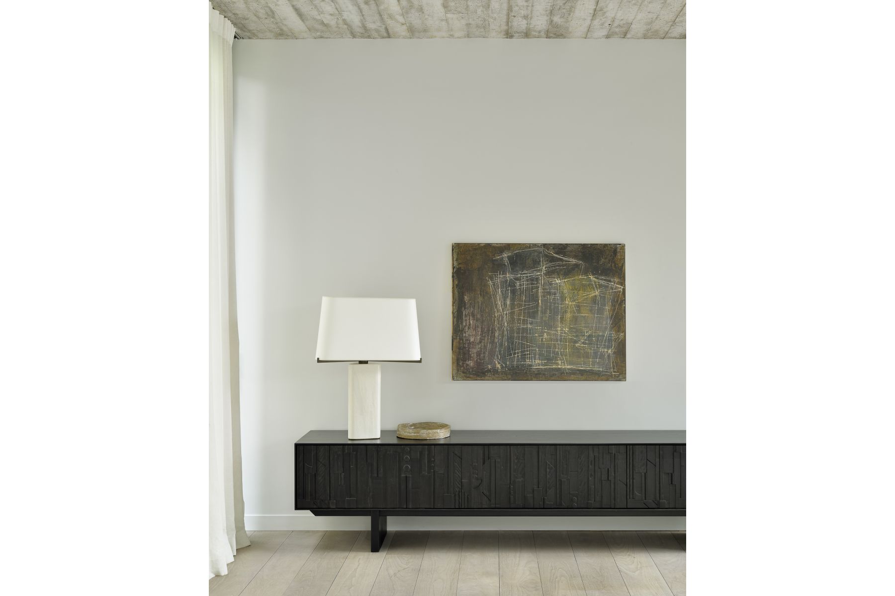 Het begon allemaal met een gelukkig voorval. Geïnspireerd door de overgebleven snijresten van onze fabrieksontwerpen, vormen de gelaagde stukken hout van de Mosaic tv-meubel een ritme dat doet denken aan het tussenstuk van een pijporgel. Zo biedt Alain van Havre, die zich tijdens zijn creatieve proces diep laat beïnvloeden door muziek, een hernieuwde vertaling van zijn obsessie voor beweging.