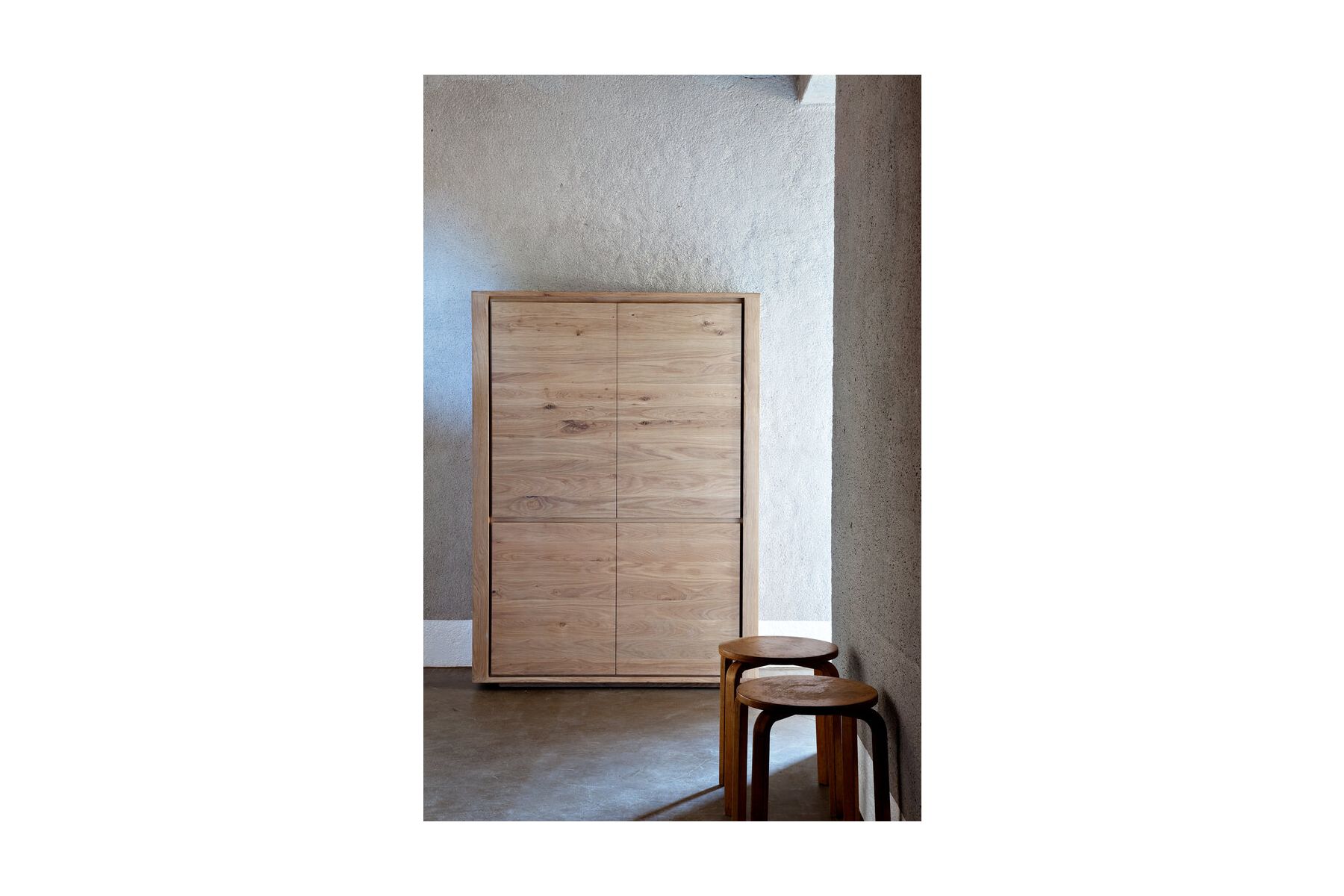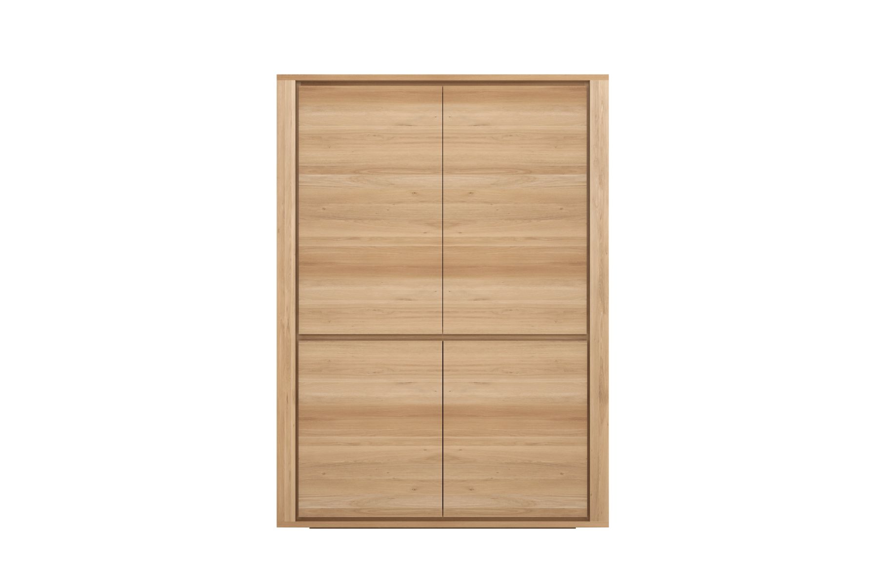 Ongecompliceerd en robuust met uitgesproken lijnen: de Shadow opbergkast uit massief eiken met vier deuren is een simpele maar indrukwekkende oplossing voor alle opslagbehoeften.