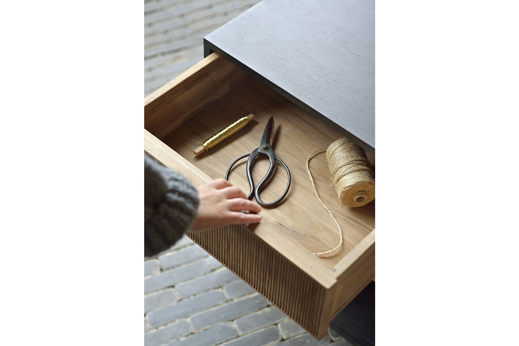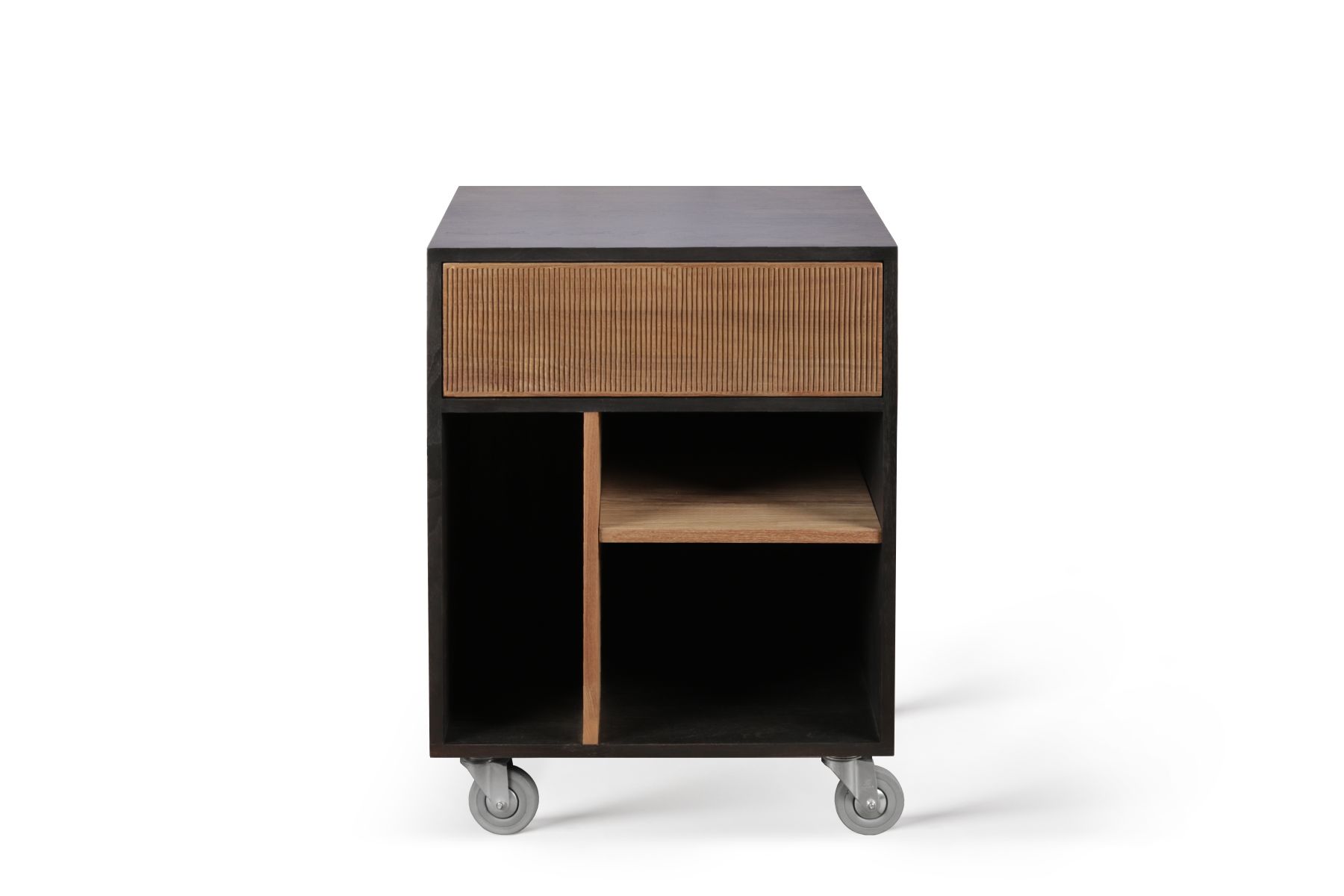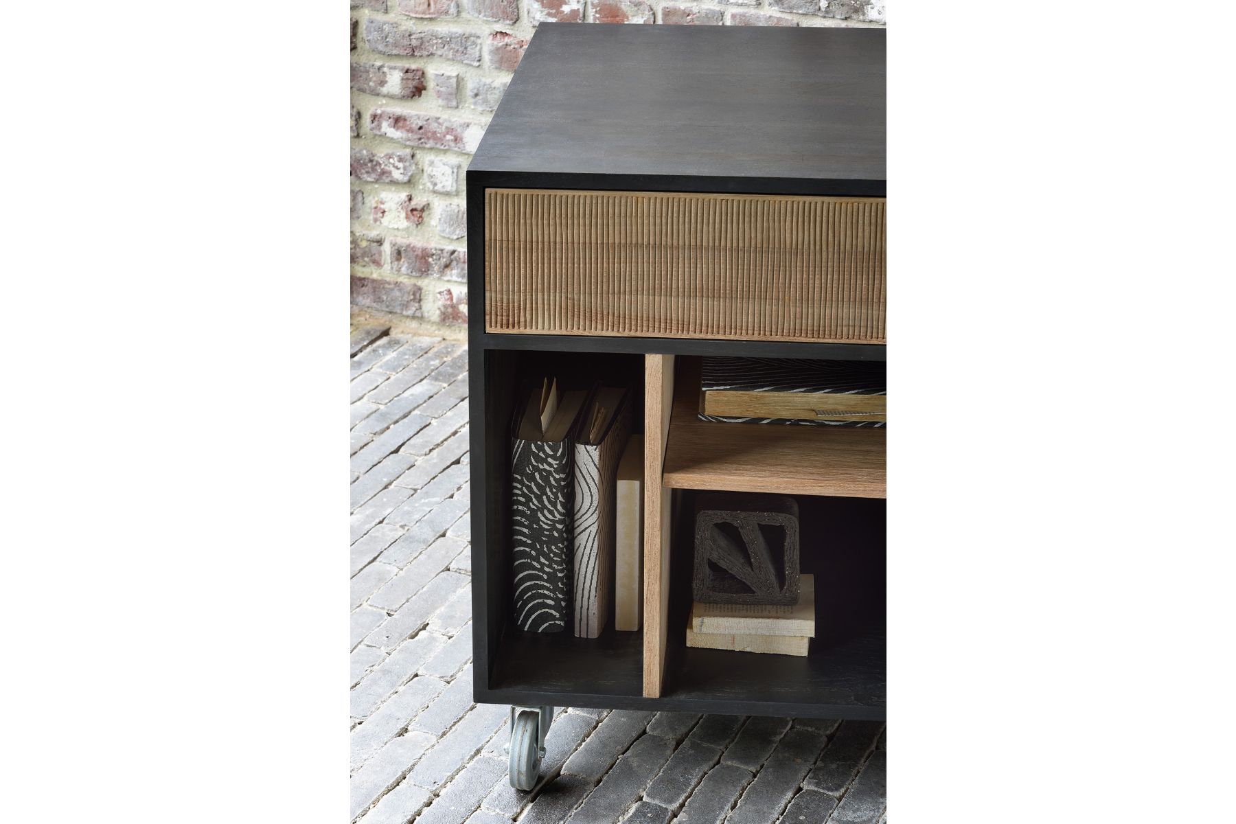 Dankzij het prachtige teakhout, de met de hand gesneden details en de handige wieltjes, staat de Oscar ladekast prachtig op zichzelf. Het past daarnaast bijzonder goed onder het open Oscar bureau voor extra opbergruimte. Dit ontwerp van Alain van Havre ma