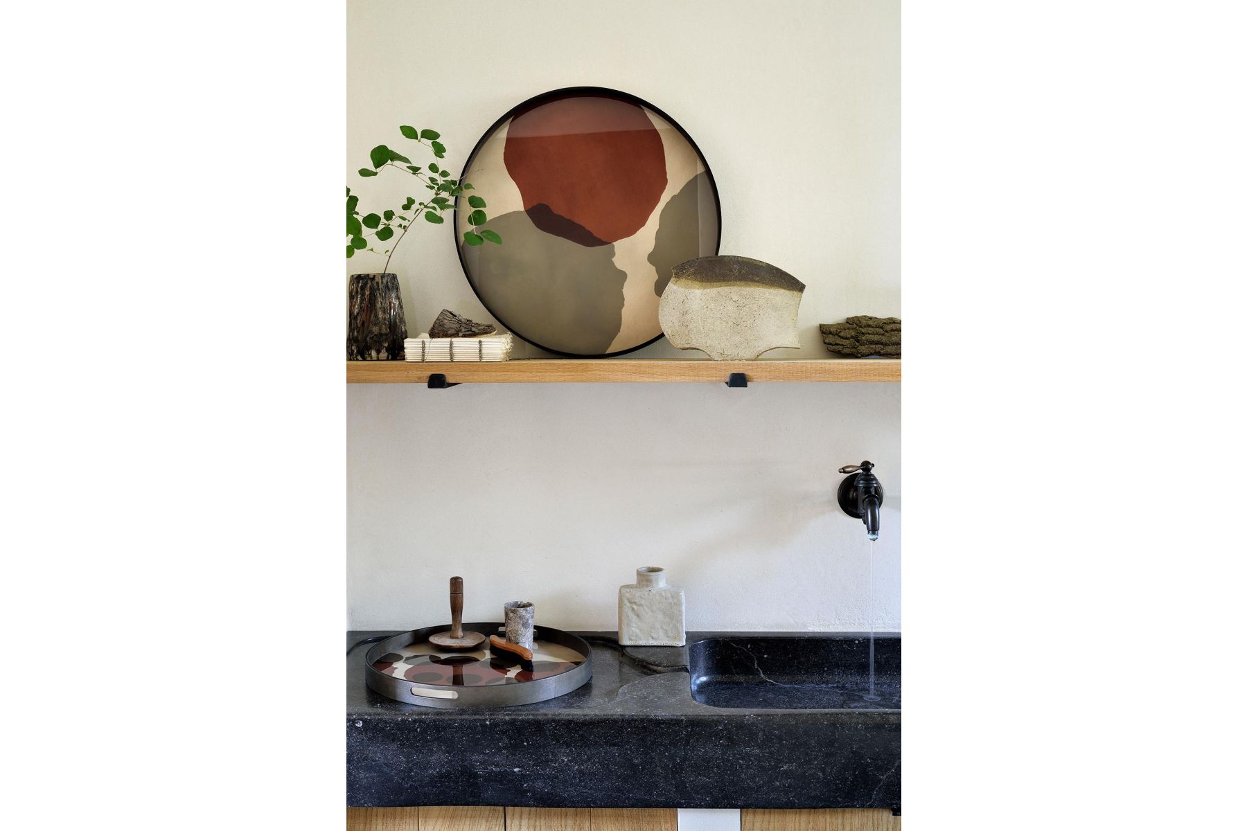 In de Translucent Silhouettes dienbladen collectie zijn organische stippen kunstig aangebracht in lagen op een verouderde ondergrond, waardoor diepte wordt gecreëerd en dynamische combinaties tot leven komen. Het algehele resultaat is gedurfd, maar tegeli