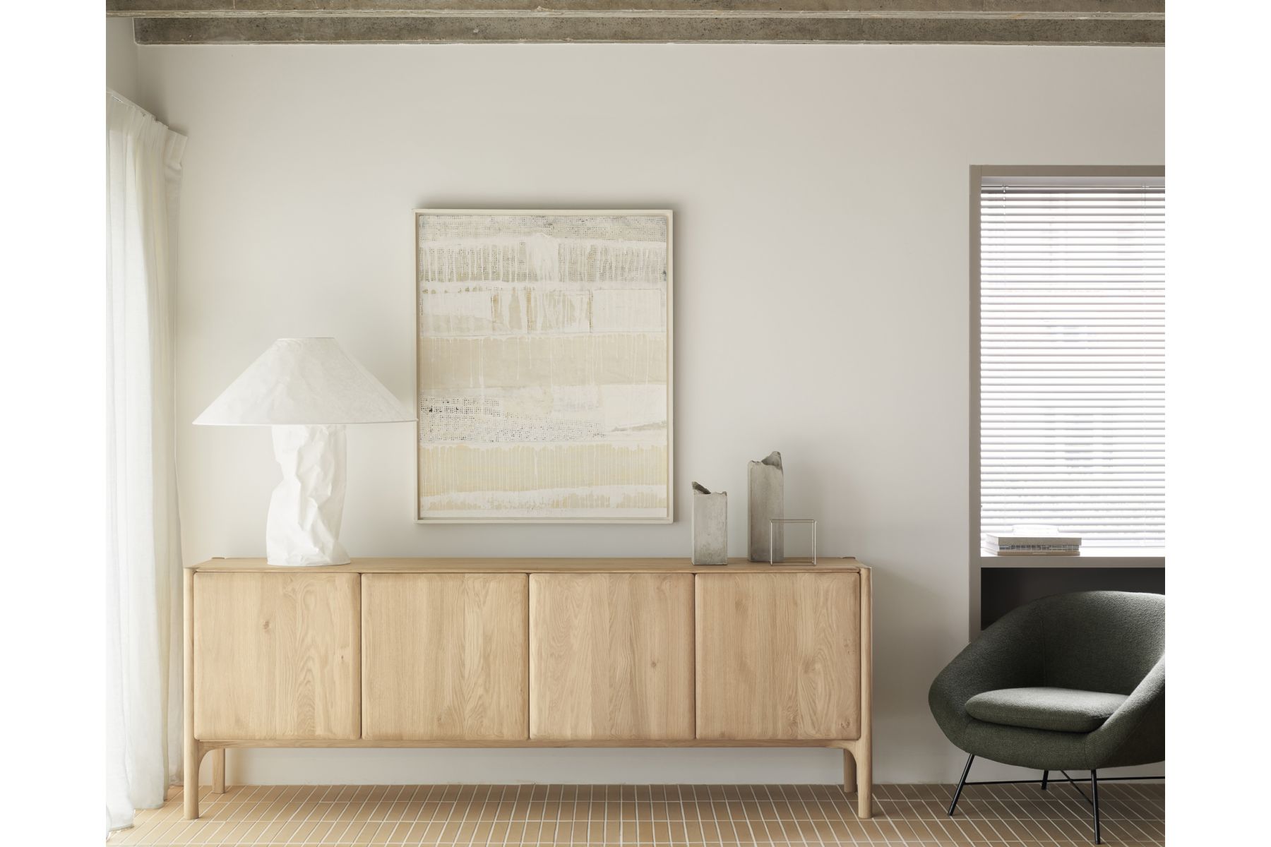 De PI-collectie bij Ethnicraft eert het ontwerp van de natuur door de kracht, rondingen en lijnen te behouden, zoals de natuur het bedoeld heeft. Interessante vormen worden ontdekt in deze strakke en stijlvolle, gepolijste imperfecte afwerking. Elk PI-item wordt met de hand afgewerkt om ervoor te zorgen dat het individuele karakter van het hout gerespecteerd wordt. Het PI dressoir is opvallend en uniek, met praktische opbergruimte die een aanvulling vormt op verschillende ruimtes.