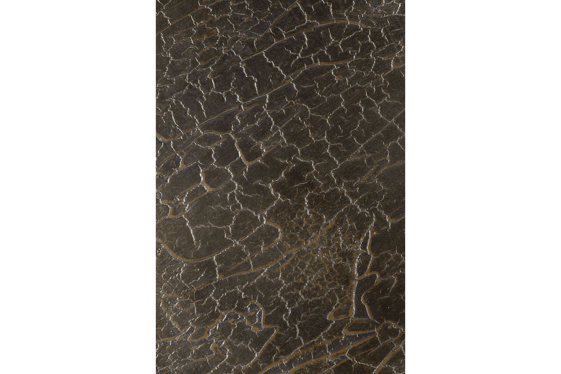 De opvallende afwerking van het tafelblad is gemaakt van minerale poeders, water, aarde, natuurlijke kleurpigmenten en metaalpoeders.