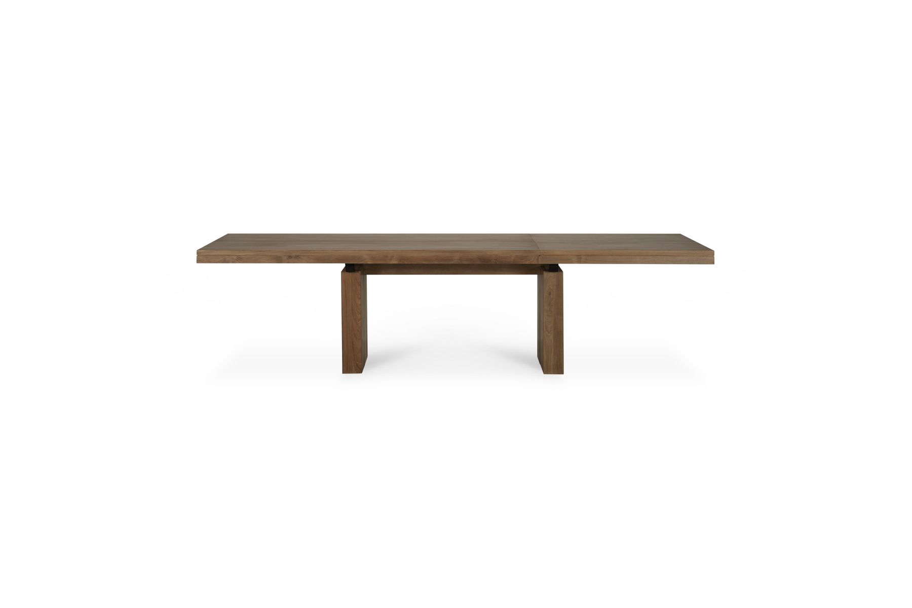 De Double uitschuifbare eettafel is een succesvolle combinatie van pure lijnen en een solide uiterlijk. Ook al ziet de massief teakhouten tafel er zwaar uit, hij kan gemakkelijk verlengd worden door één persoon. Er zijn maar een paar stappen en niet meer