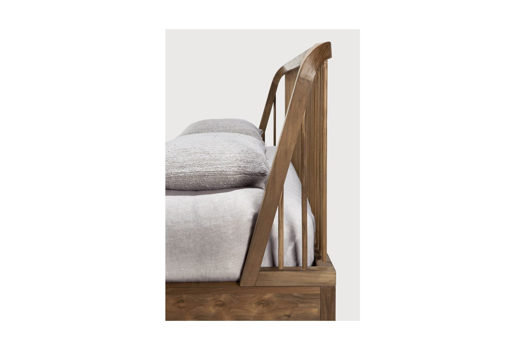 The Spindle collection found its inspiration in the traditional spinning wheel and incorporates perfectly aligned spokes into the headboard. Slightly tapered legs and rounded edges add a soft, sensual quality to this beautiful bedroom collection. Reclaimed teak offers a truly unique finish for each and every item — the origin of each hand-finished piece of furniture carries its own story in its material.