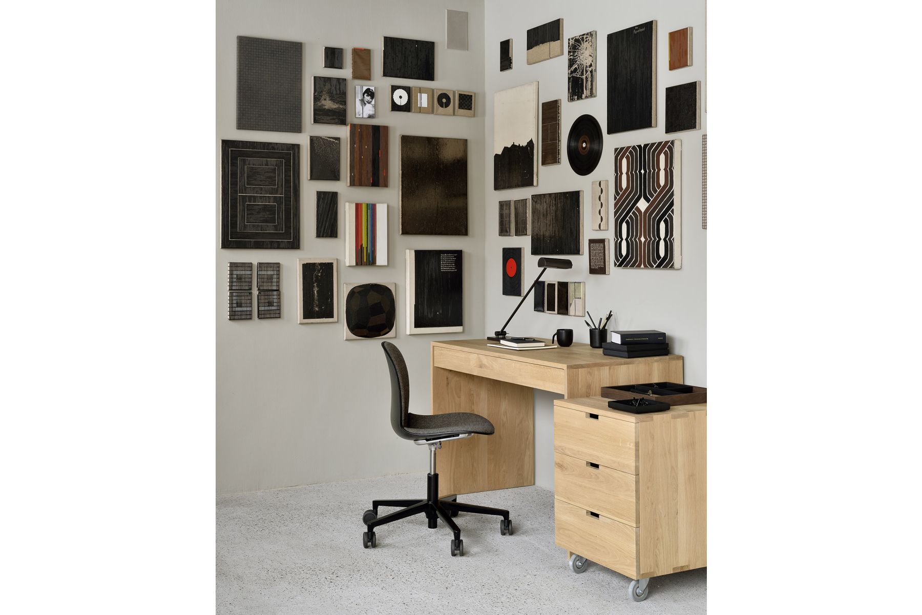 Creëer een warme sfeer in uw thuiskantoor met het Wave bureau. Gemaakt van massief hout, met één push-to-open lade.