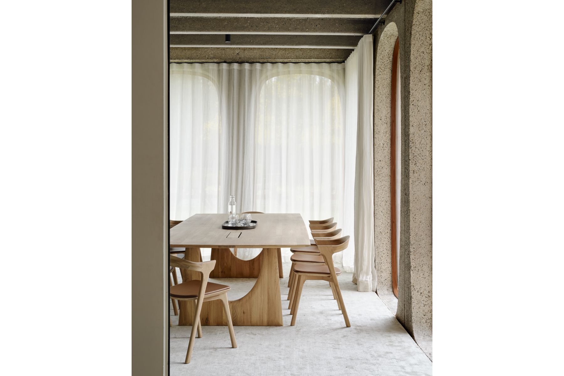 Geometric vergadertafeldoor Alain van HavreIn de Geometric collectie kruisen vormen elkaar op onverwachte manieren, waardoor er vanuit elke hoek speelse contrasten ontstaan met licht en schaduw. Met zijn zachte randen en natuurlijke lijnen geeft de Geomet