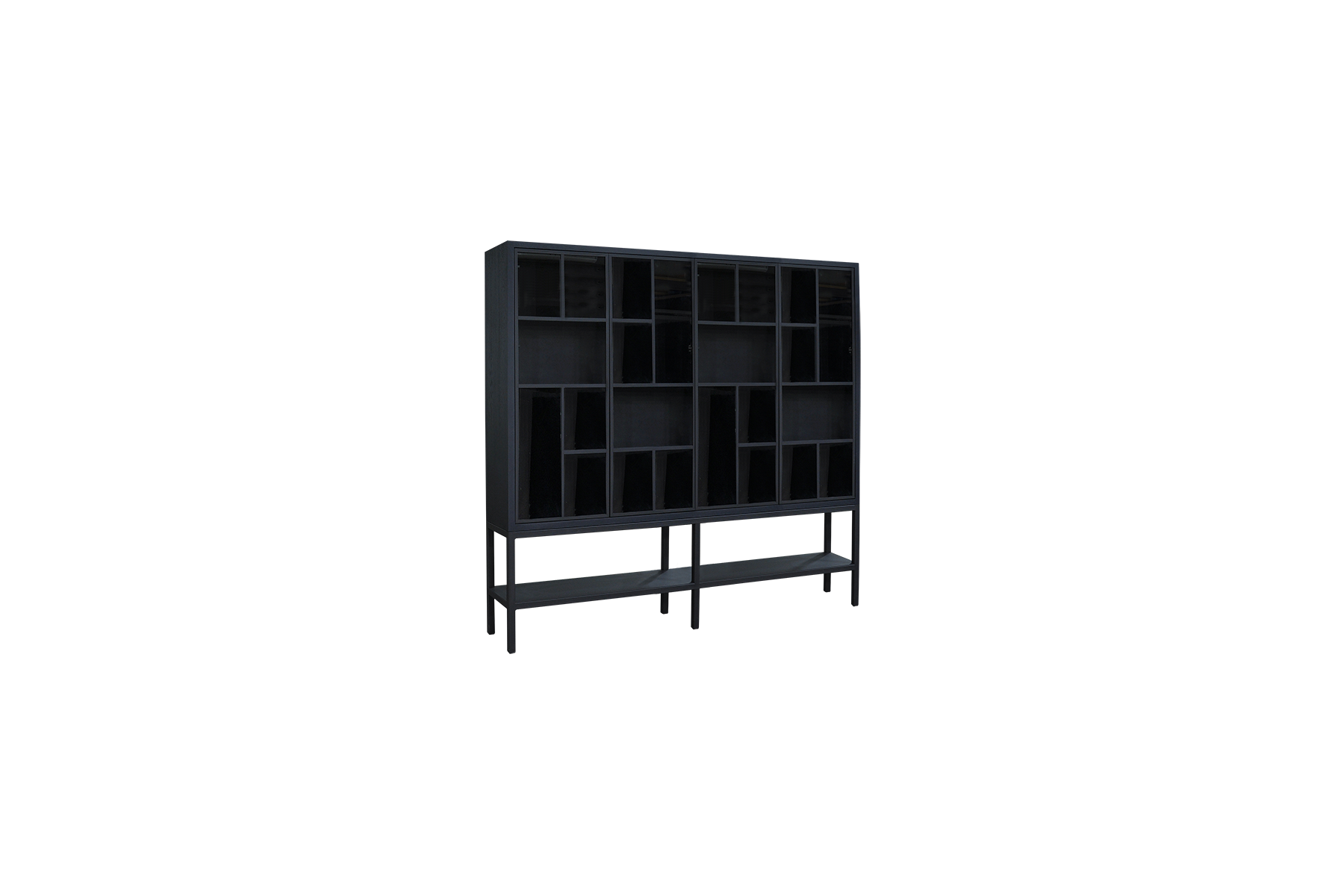 Glaskast eiken rustiek STOER 4drs metaal versprongen/ metalen frame EGK139