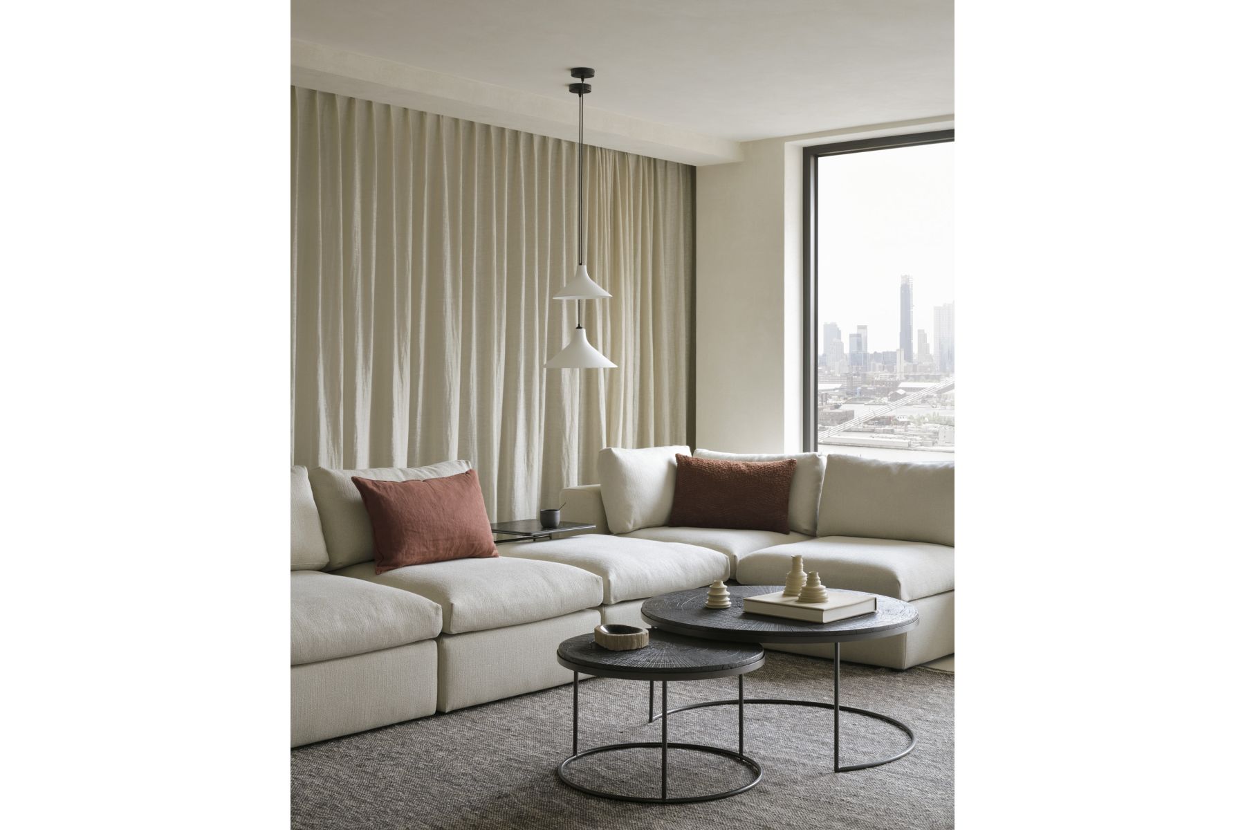 NESTING COFFEE TABLE - VARNISHED MINERALS - RAY UMBER - ROUND - SET OF 2 61/90 x 61/90 x 36/25915