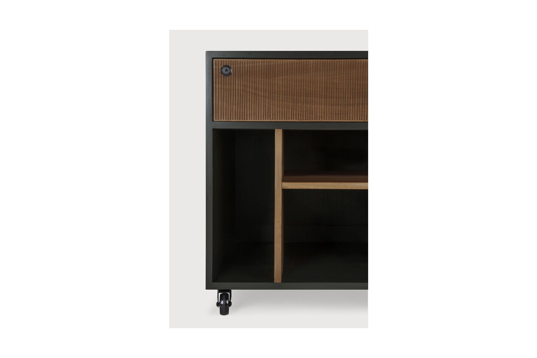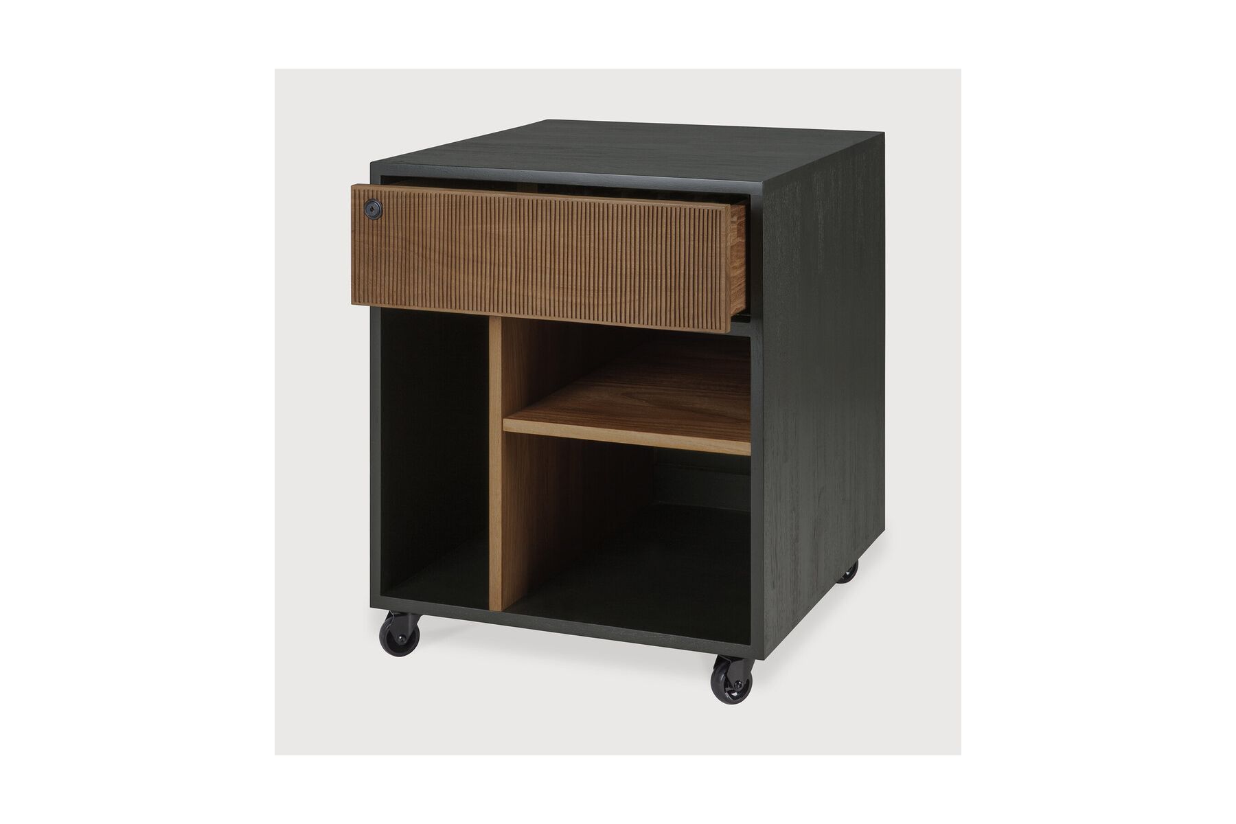 Oscar ladekastDe Oscar-collectie voegt vorm en functie toe aan uw professionele leven en voldoet aan alle eisen. Met handgesneden details in massief teakhout en de praktische wieltjes is de Oscar-ladekast veelzijdig inzetbaar. Hij past perfect onder een bureau voor extra opbergruimte of als vrijstaand meubelstuk.