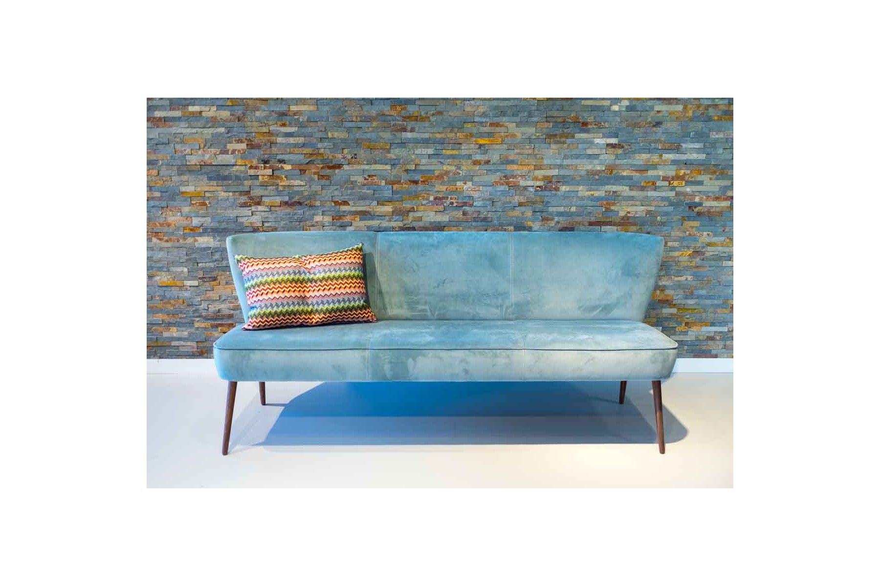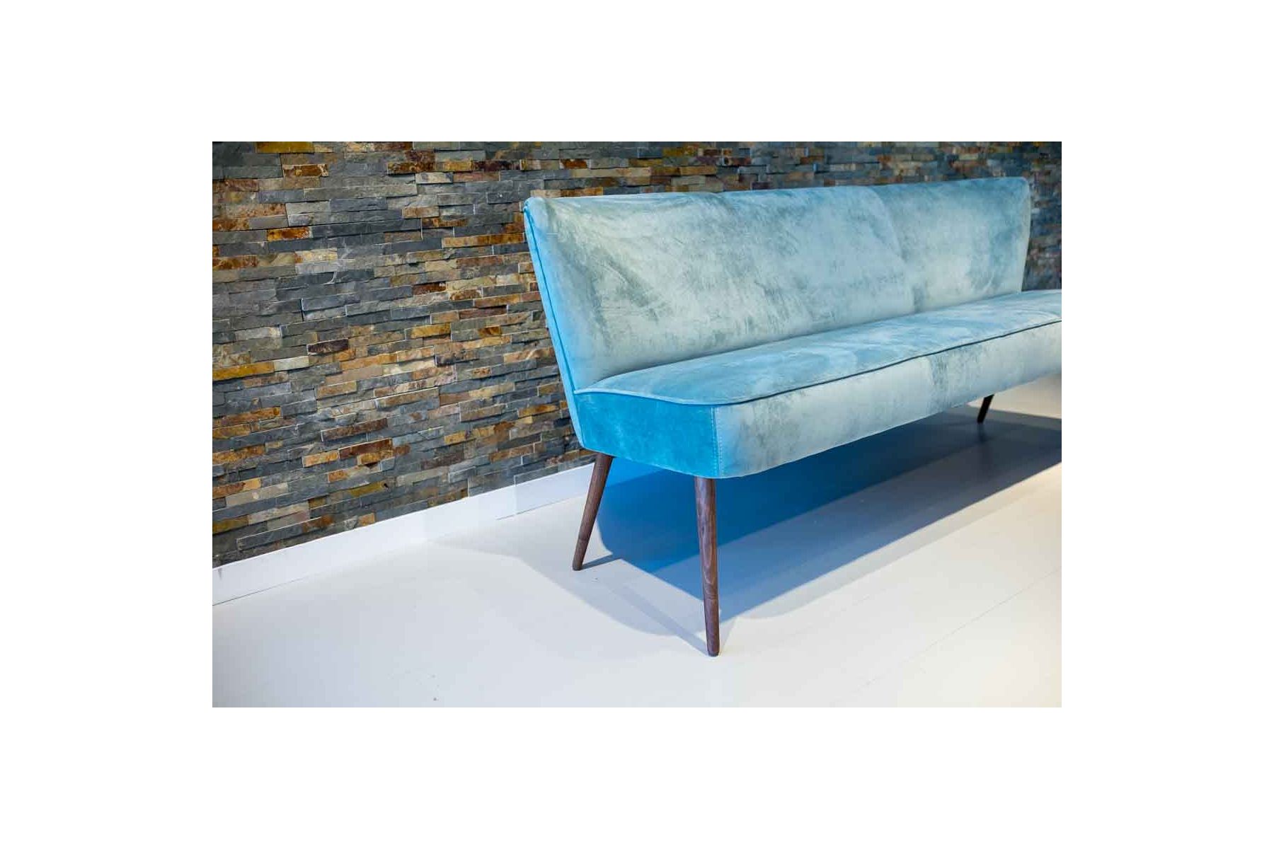 Hoe leuk! Dit Riva eetkamerbankje is te verkrijgen in verschillende maten en brengt meteen een gezellige sfeer aan tafel. Het blauwe bankje is gestoffeerd in een sterke velour stof en mogelijk in verschillende kleuren. Je kunt het bankje en de eetstoelen ook in andere stoffen of leer bestellen. Of maak een mooie combinatie.
