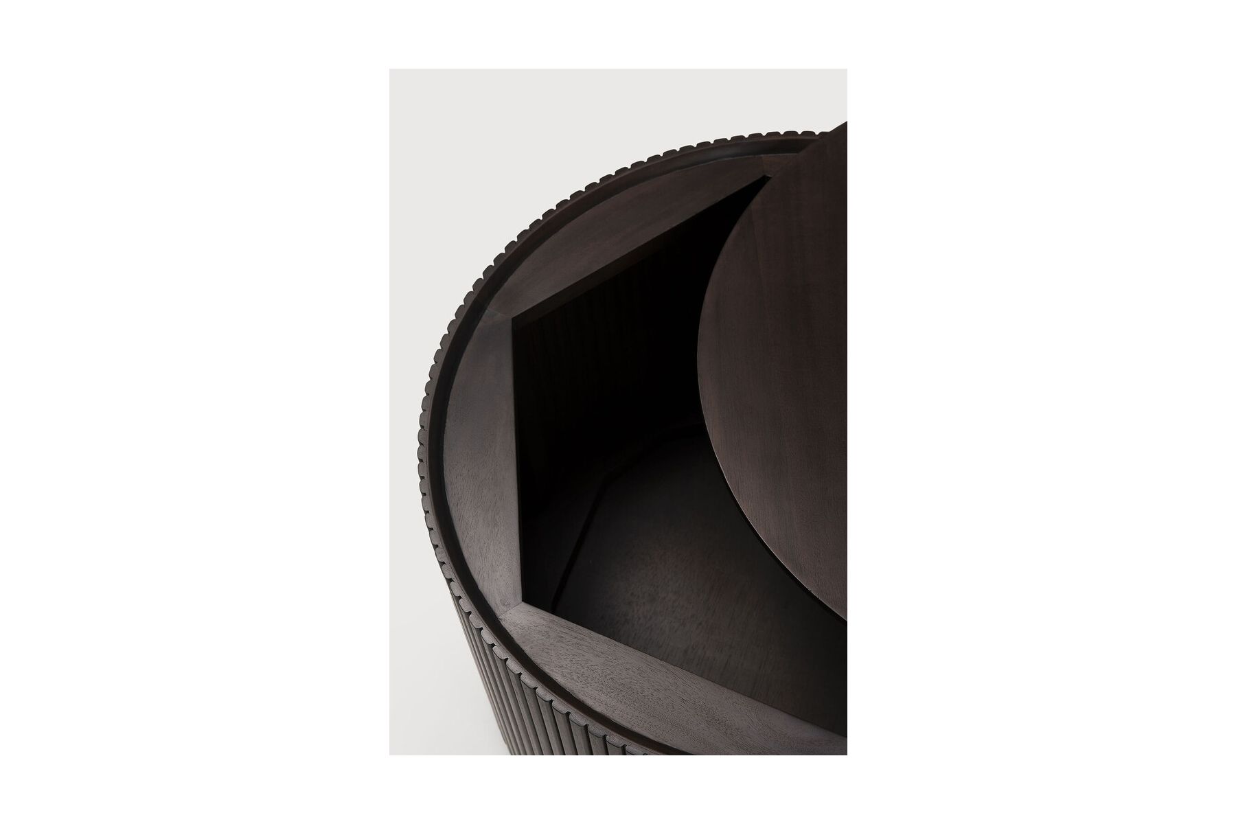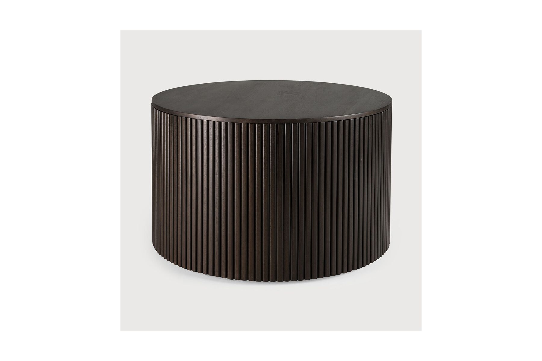 De ronde Roller Max koffietafel, ontworpen door Jacques Deneef, is een slim multifunctioneel item dat een koffietafel combineert met opbergruimte. Het tafelblad, ingekapseld in het geritmeerde houten effect, kan gemakkelijk verwijderd worden om de kranten