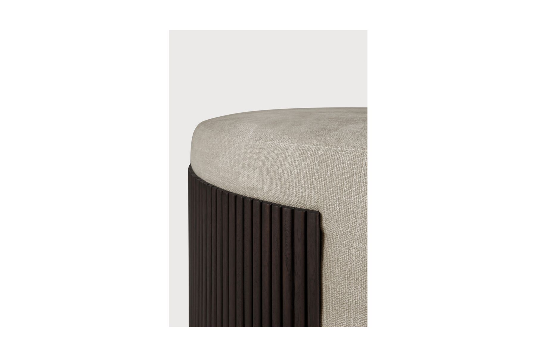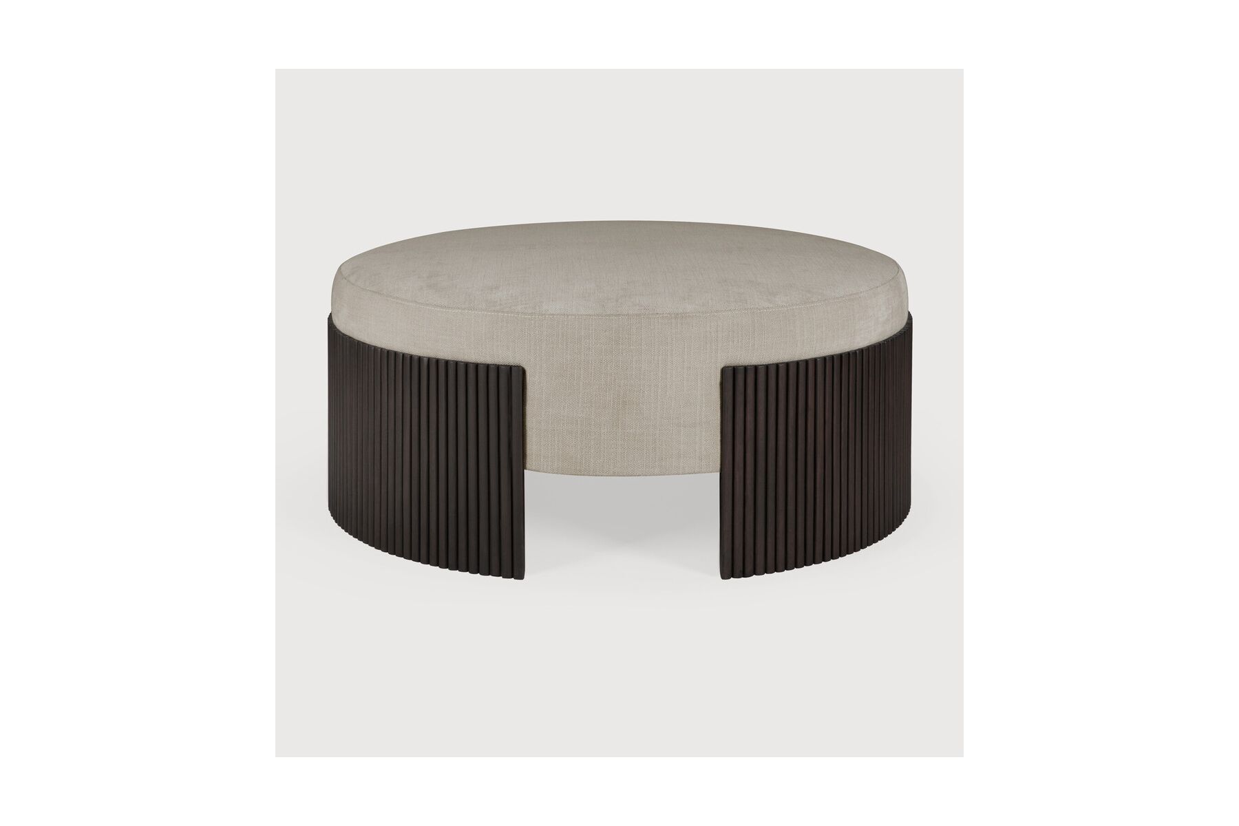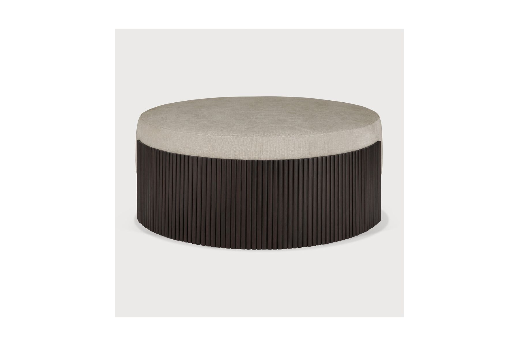 Roller Max poefdoor Jacques DeneefDe Roller Max collectie valt op de deur zijn ontwerp met geritmeerd houten effect. De poef is een multifunctioneel item dat het comfortabele bekledingskussen inkapselt in het donkerbruine gelakte mahonie.LET OP; de voorra
