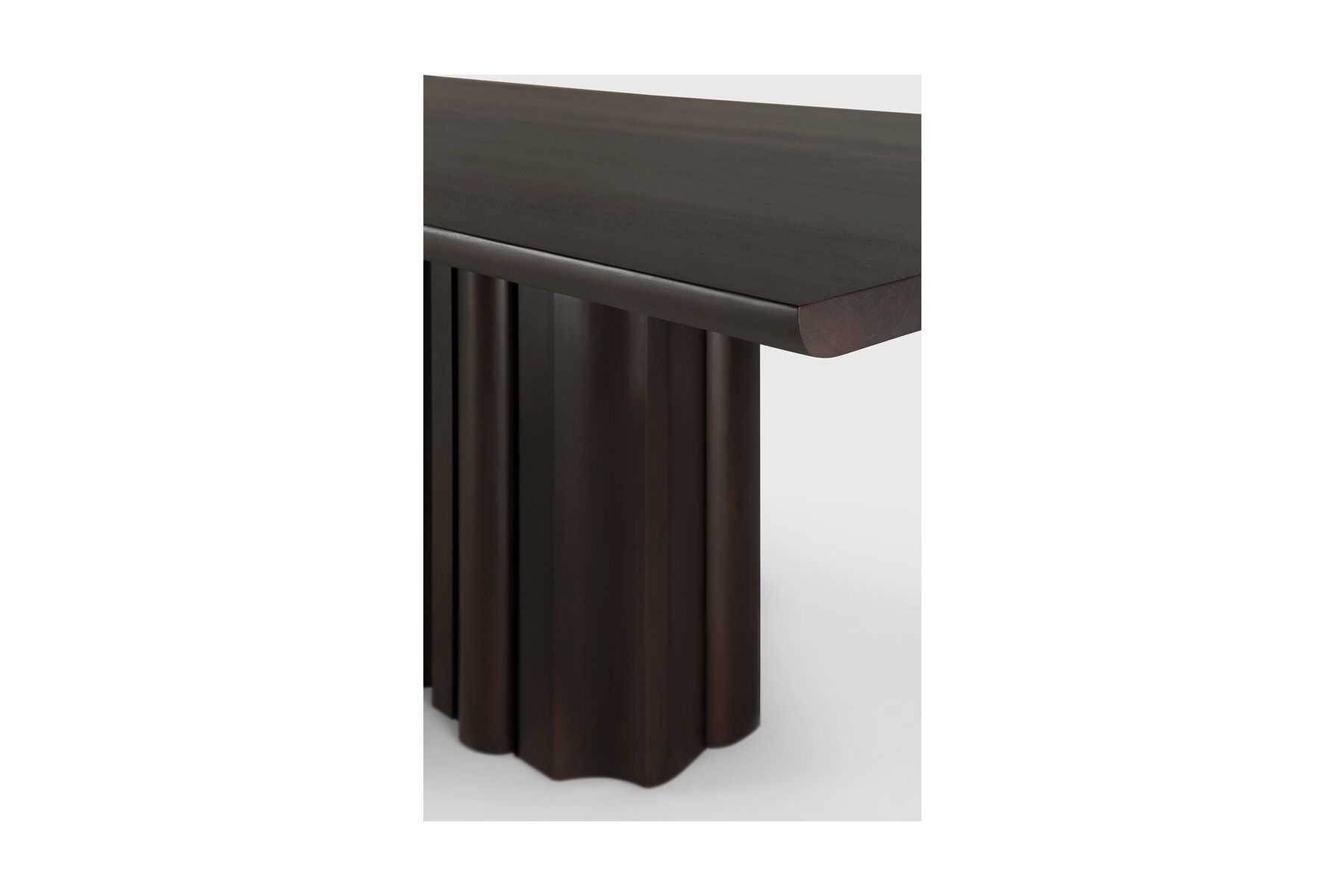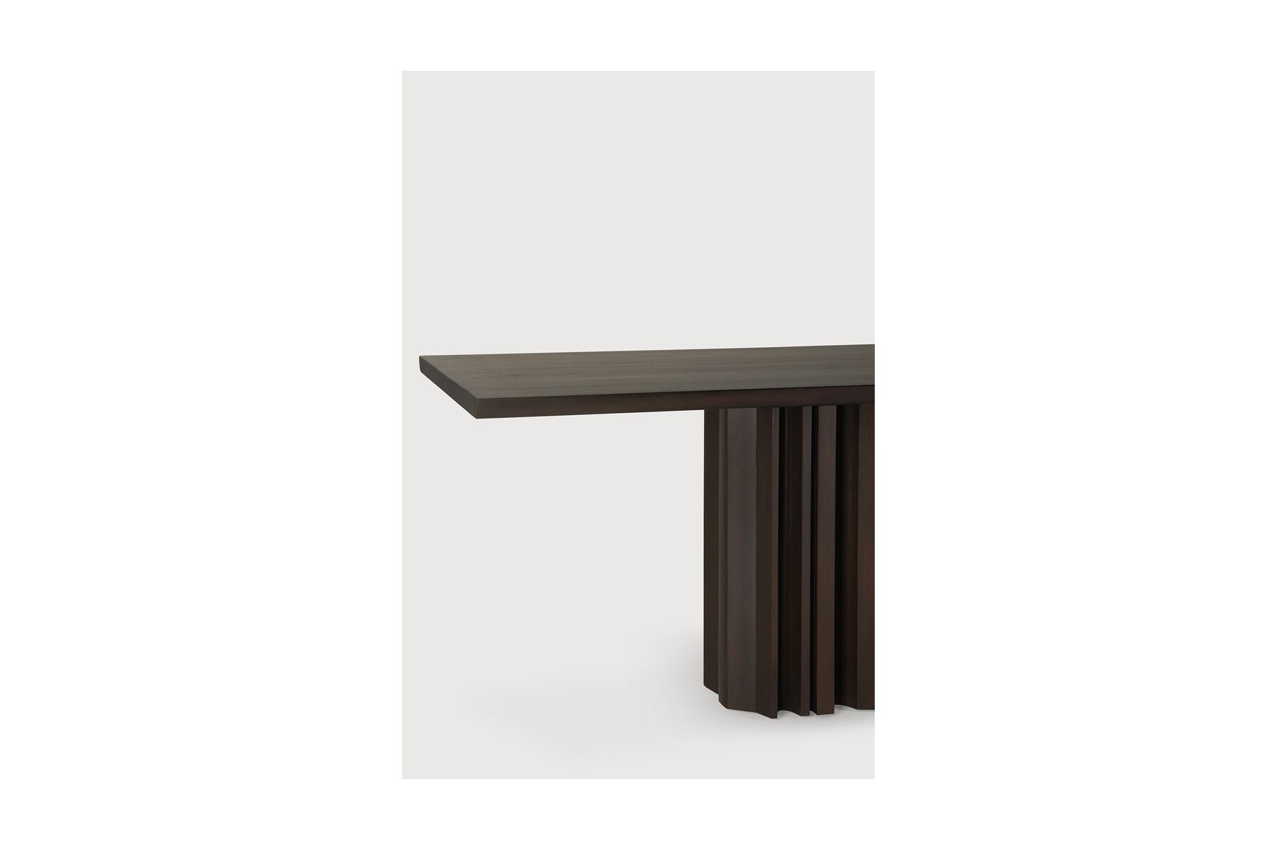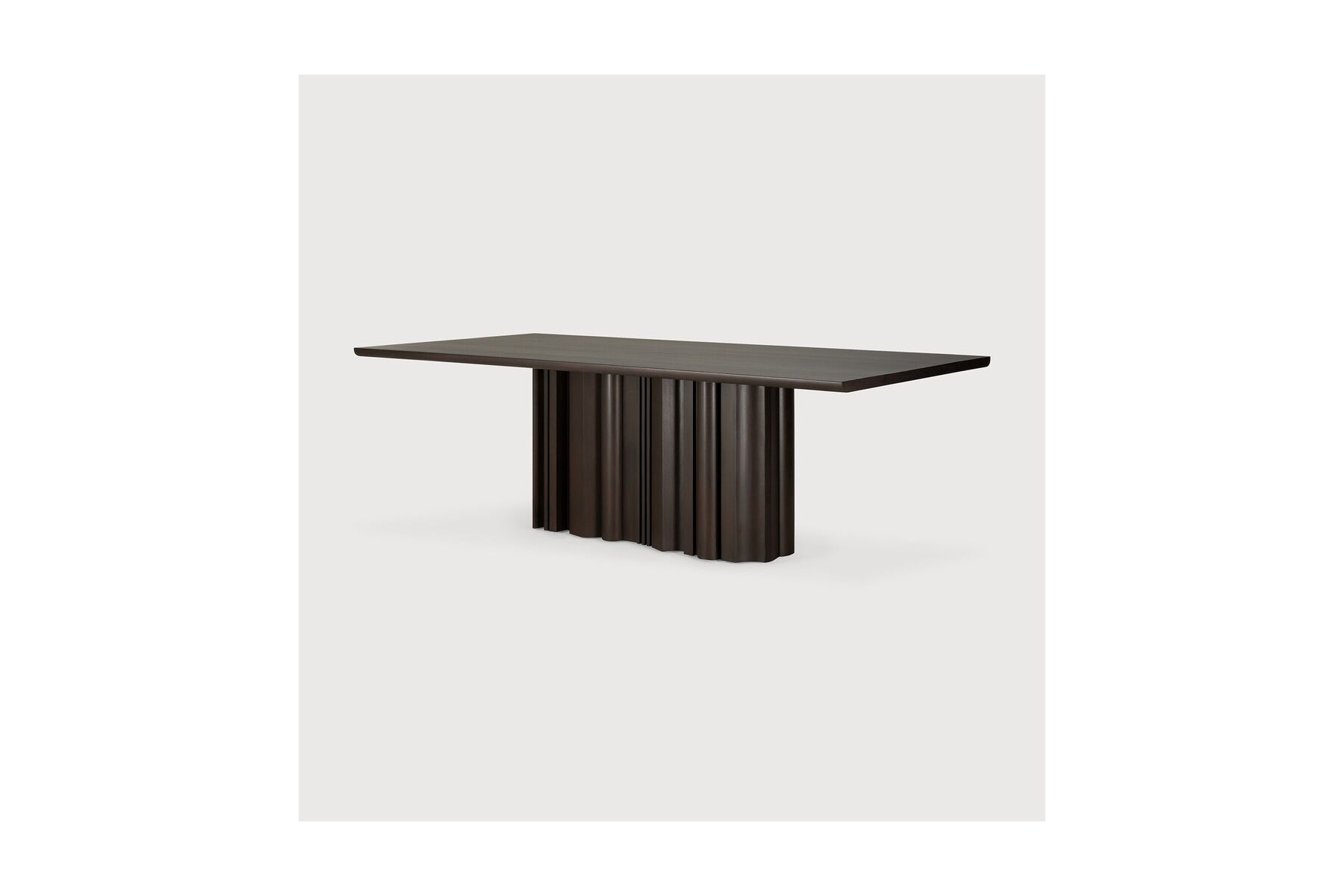 Geïnspireerd door de ritmische stroom van herhaling en variatie, voegt de Sequence eettafel een gevoel van dynamiek toe aan de ruimte. Massieve houten elementen vormen een sculpturale basis, waarbij afwisselende vormen een gebalanceerd samenspel creëren van aanwezigheid en openheid. Het strakke tafelblad zorgt voor een subtiel contrast, waardoor het ontwerp zijn eenvoud behoudt.