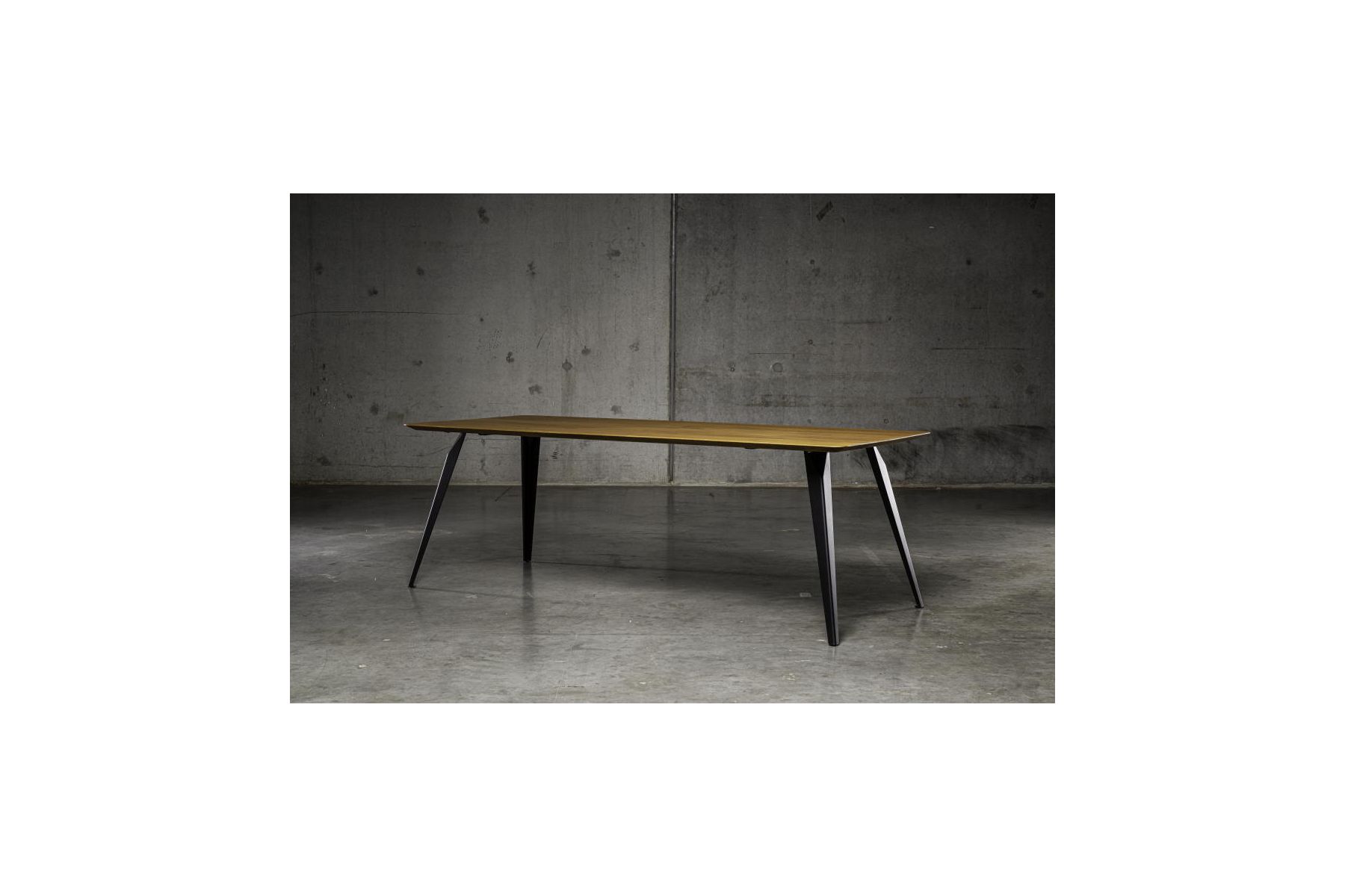 Ook in eikenhout verkrijgbaar:Liever een andere uitstraling? De Spike tafel is ook leverbaar in massief eikenhout, met net zoveel maatwerk- en afwerkingsmogelijkheden als de notenhouten variant.