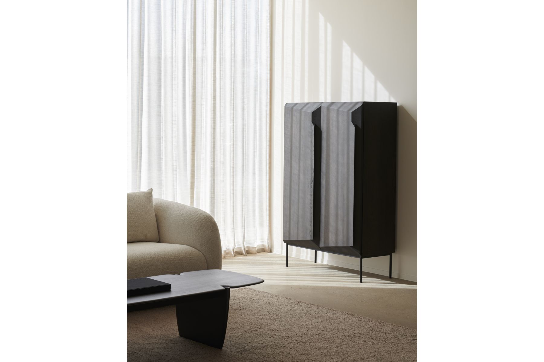 Een hoekig design, ontworpen door Alain van Havre, vormt het hart van deze creatie waarin er afstand wordt genomen van traditionele statische en onbeweeglijke oppervlakken. Een uniek gevoel van volume wordt gecreëerd en verandert uw waarneming van de opbe
