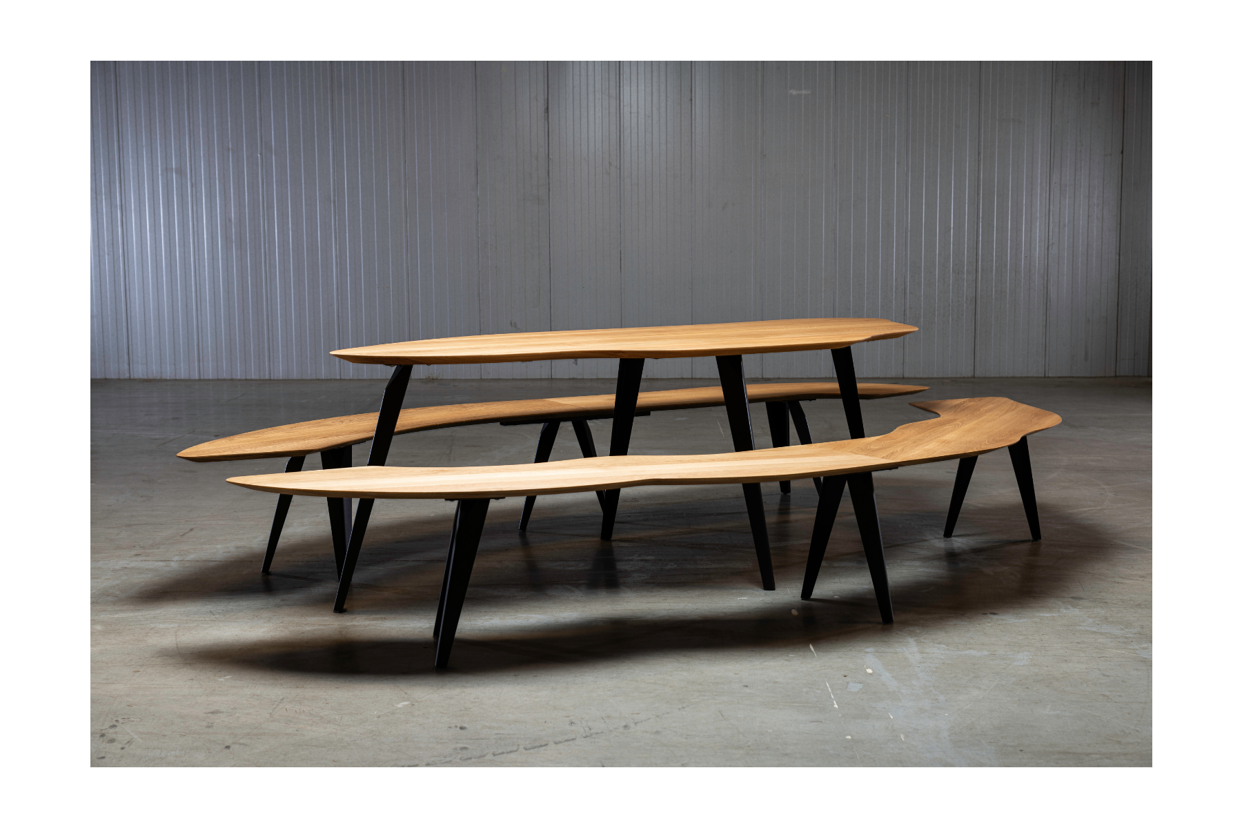 Net als de tafel wordt de bank uitgevoerd in massief Amerikaans notenhout, met maximaal vier noesten per vierkante meter en een prachtige, diepe kleur. Je kiest zelf de afwerking van het hout, bijvoorbeeld olie of lak, en het onderstel kan geleverd worden in zwart, wit of elke gewenste RAL-kleur voor een harmonieus geheel met jouw Texel tafel.