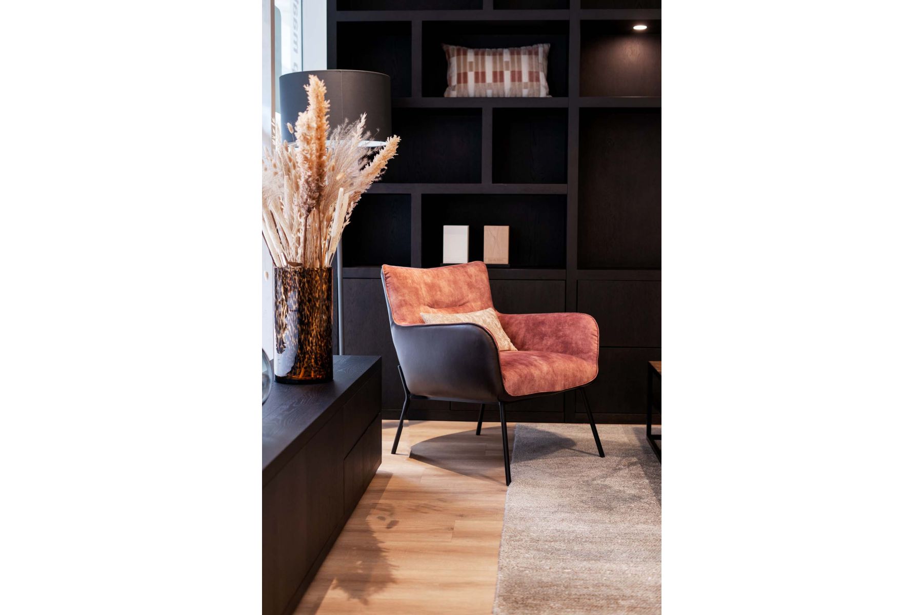 Tulp fauteuil leer/stofcombinatie is beschikbaar om te kopen in verhogingen van 1